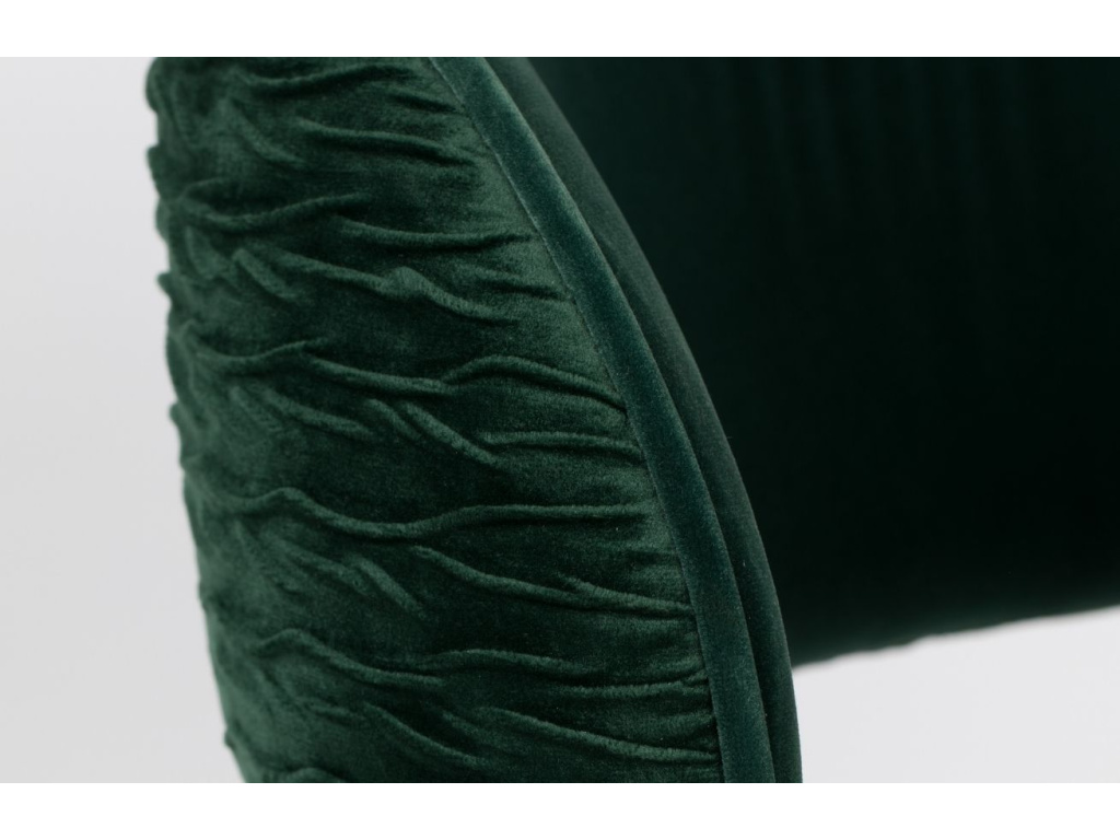 Stylová židle The Winner Takes It All značky Bold Monkey vybočuje z řady svým jedinečným designem blížícím se stylu art deco. Komfortní čalounění ze sametové látky v tmavě zelené barvě zaujme dominantním a elegantně nařaseným vzorem obíhajícím po obvodu opěradla a sedáku. Výrazný barevný odstín společně s kovovou podnoží v elegantní černé barvě vytváří příjemný vzhled, který se hodí do každého interiéru. Bonusem je FFRs certifikát, který zaručuje určitý stupeň nehořlavosti (cigarety, apod). Křeslo je vhodné do domácího prostředí a především do komerčních prostor, jako jsou hotely, přijímací haly apod.