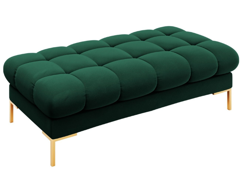 Elegantní lavice Micadoni Mamaia zaujme na první pohled svým nadýchaným vzhledem. Velmi příjemné sametové čalounění a zlatá podnož vytváří kontrast, který interiéru dodá elegantní vzhled a nádech luxusu. Díky zajímavému prošívání vzniká jemný design, který do vašeho domova vnese lehkost a styl. Nechte se obklopit komfortem ve společnosti produktů Mamaia.