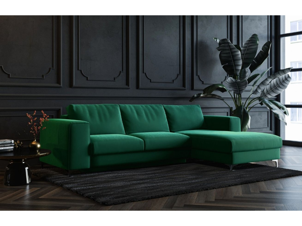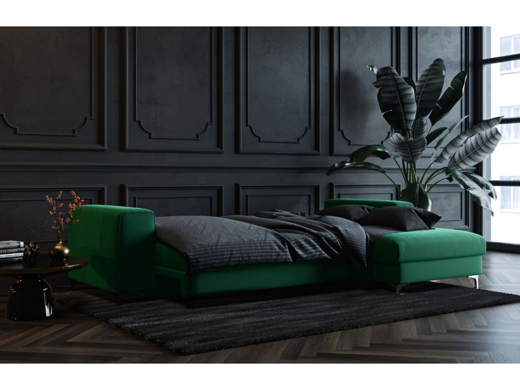 Stylová a luxusní designová rohová pohovka DEVICHY Rothe se díky svému jedinečnému a minimalistickému tvaru stane nepřehlédnutelnou součástí vaší domácnosti. Stabilní kovová podnož je dokonale doplněna o čalounění z kvalitní sametové tkaniny v tmavě zeleném provedení, která je charakteristická pro svou nadprůměrnou odolnost a speciální vodě odpudivou úpravu. Pohovku DEVICHY Rothe navíc snadno můžete proměnit na pohodlné a dostatečně velké lůžko, díky jednoduchému rozkladu. Reprezentativní a exkluzivní vzhled dokonale kombinuje pohodlí a styl.
