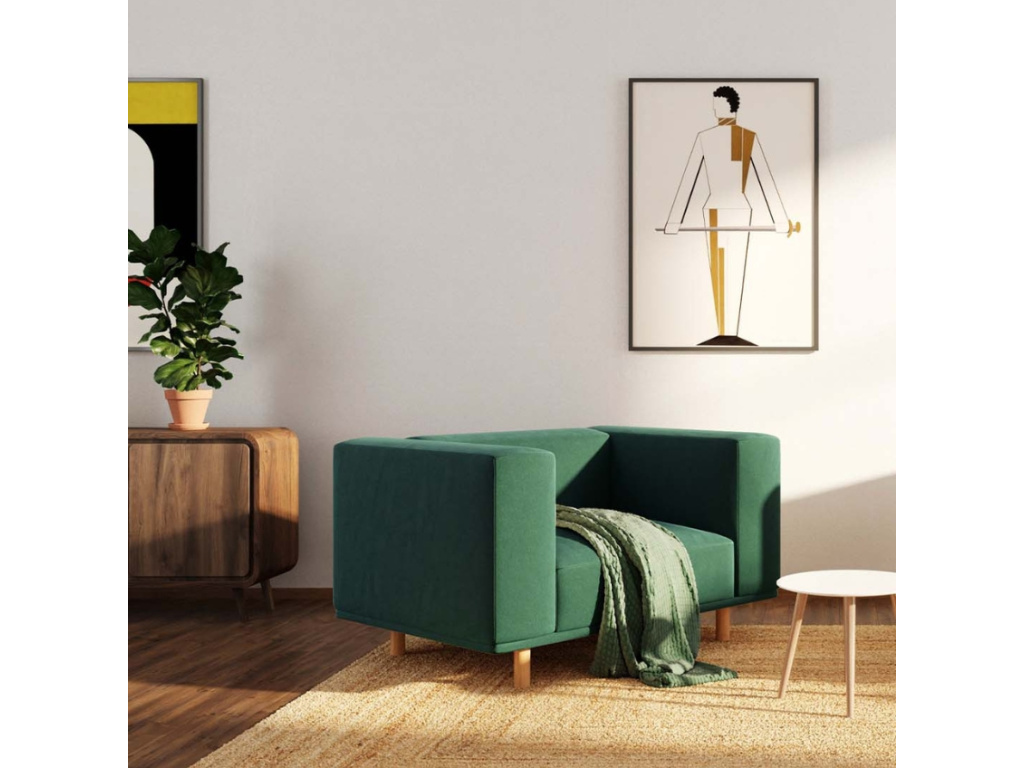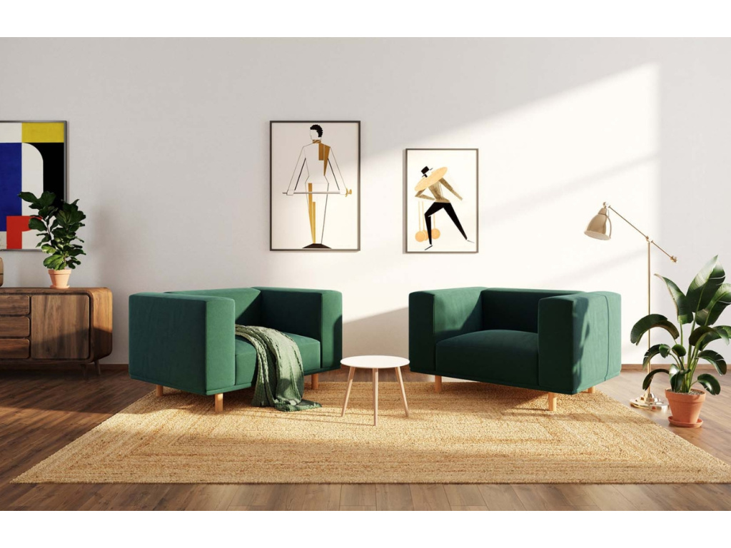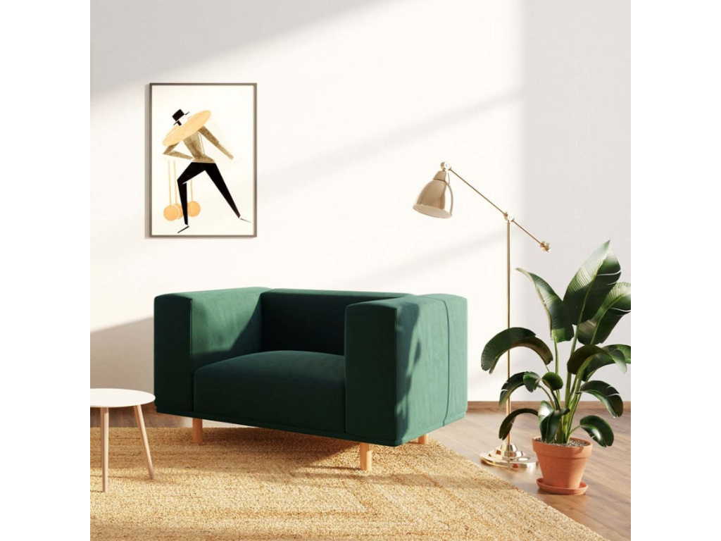 Dopřejte si odpočinek, který si zasloužíte! Křeslo Kukumo od značky Ame Yens kombinuje styl 70. let s japonským a skandinávským designem. O vaše maximální pohodlí se postará jeho jemně lesklé sametové čalounění v tmavě zeleném provedení, které je hebké a příjemné na dotek. Tkanina je velmi odolná proti oděru a absorpci tekutin, čímž zaručí dlouhodobé používání bez známek opotřebení. Celkový design křesla doplňuje podnož z přírodního světlého dřeva. Doplnit jej můžete o dvoumístné či rohové pohovky ze stejnojmenné kolekce. Kukumo nabízíme ve čtyřech barevných provedeních. Odpočívejte ve stylu!