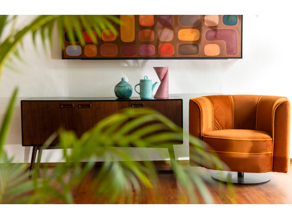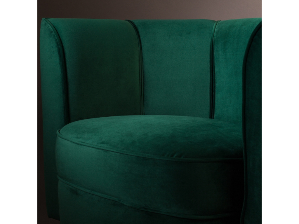 Designové křeslo Dutchbone Flower svým sametovým vzhledem vybízí k okamžitému odpočinku a relaxaci. Křeslo se pyšní elegantními křivkami a je umístěno na kruhové podnoži s otočnou funkcí. Čalounění z příjemné a hlavně atraktivní sametové tkaniny zaujme svým lahvově zeleným odstínem, který oživí každý interiér. Neotřelý design dovoluje křeslo využívat jak u vás doma, tak i v komerčních prostorech – co takhle potěšít jím hosty v hotelovém lobby?