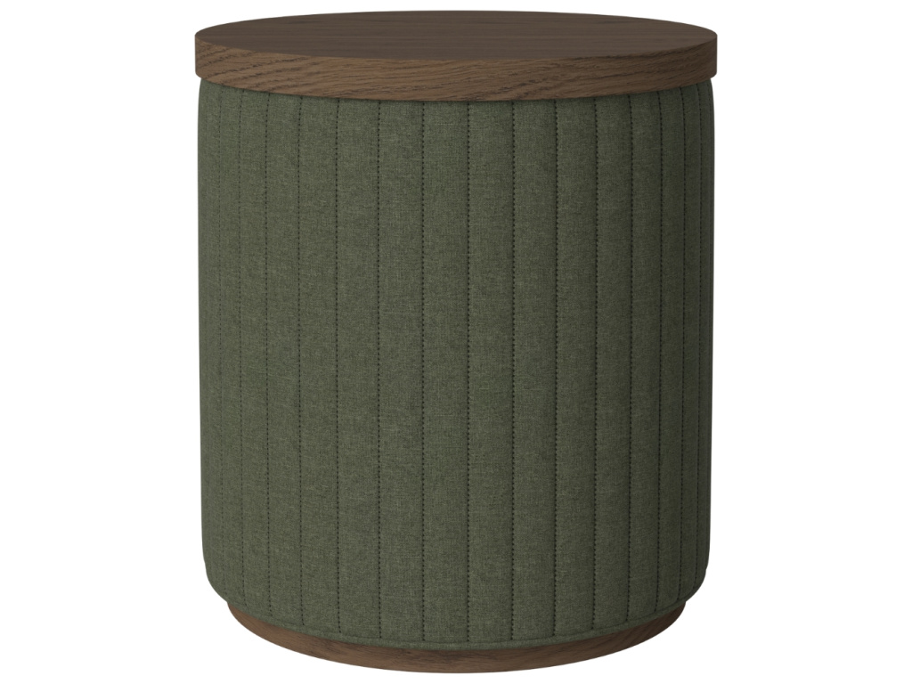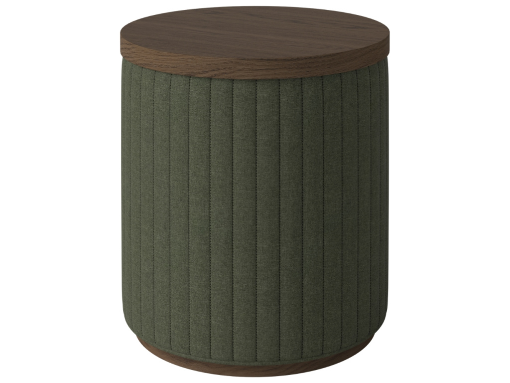 Podívám seTmavě zelený čalouněný taburet Rigato 40 cm s tmavým dubovým podnosem