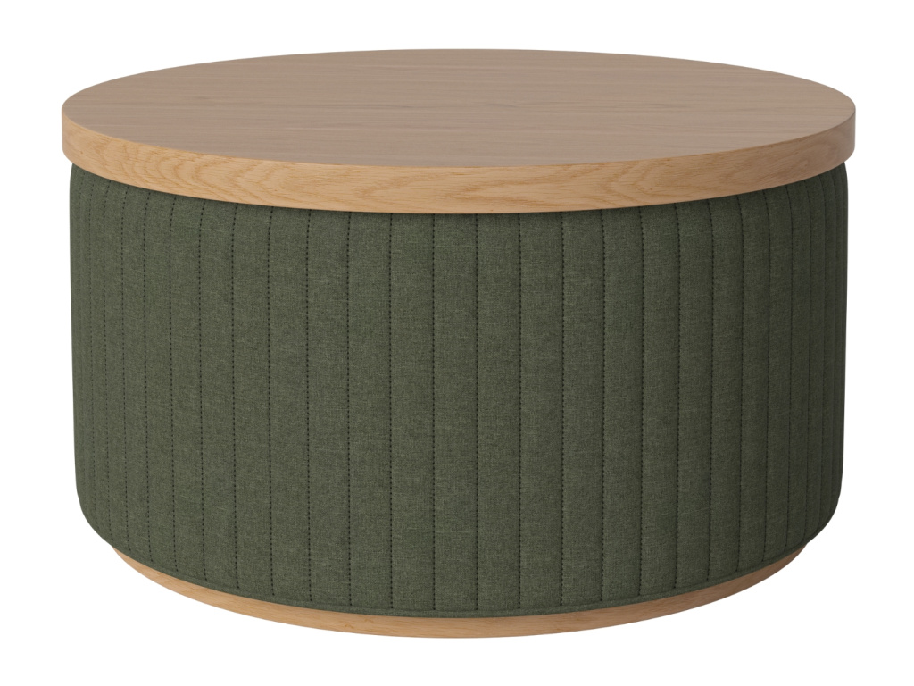Podívám seTmavě zelený čalouněný taburet Rigato 66 cm s dubovým podnosem