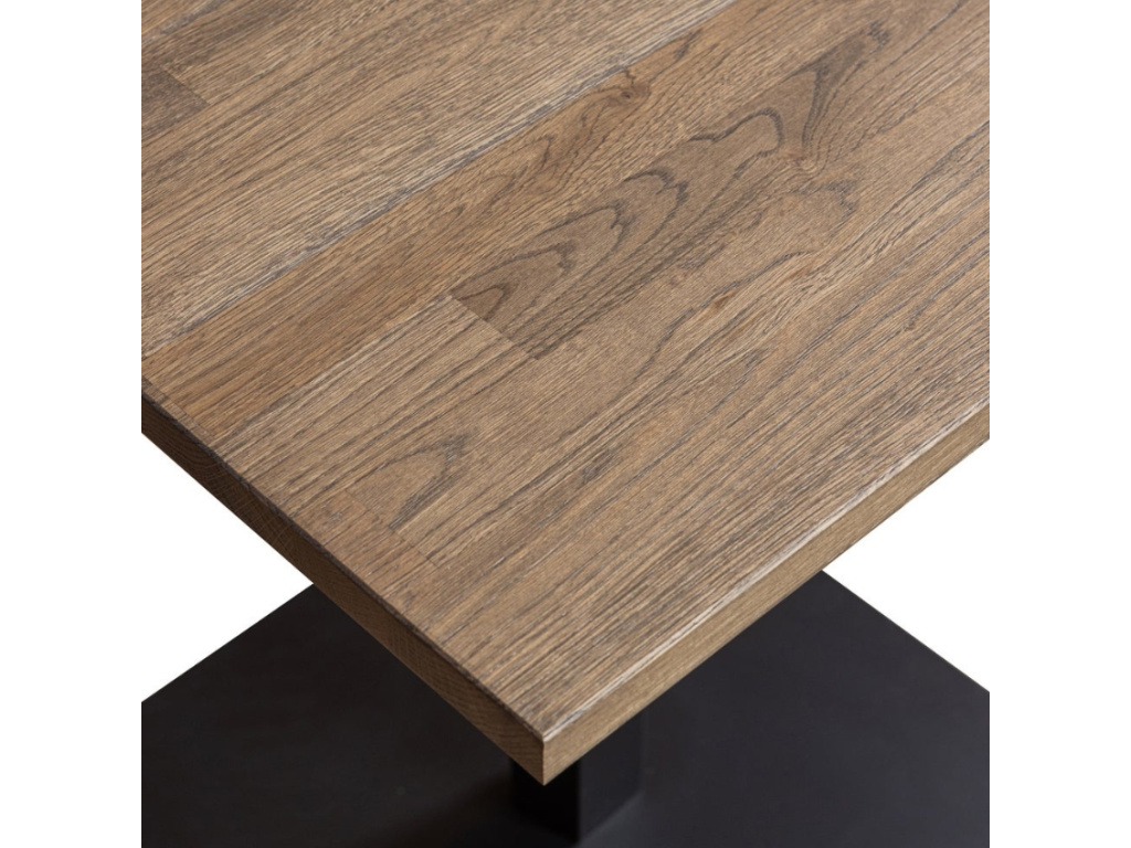 Tablo v kompaktním rozměru 79 × 79 cm je ideální volbou pro menší jídelny, kuchyňské kouty, kavárny nebo pracovní prostory. Jeho jednoduchý čtvercový tvar působí moderně, prakticky a univerzálně – bez zbytečných ozdob, zato s citem pro detail. Povrchová úprava v hřejivém tónu zvýrazňuje přirozenou strukturu dřeva a dodává stolu lehkost a eleganci. Stabilní konstrukce zajišťuje odolnost při každodenním používání, zatímco kvalitní materiál s certifikací FSC® garantuje šetrnost k přírodě i dlouhou životnost. Tablo je důkazem, že i menší stůl může mít velký vizuální dopad. Stylový, všestranný a připravený být srdcem vašeho prostoru – ať už doma, nebo v komerčním interiéru.