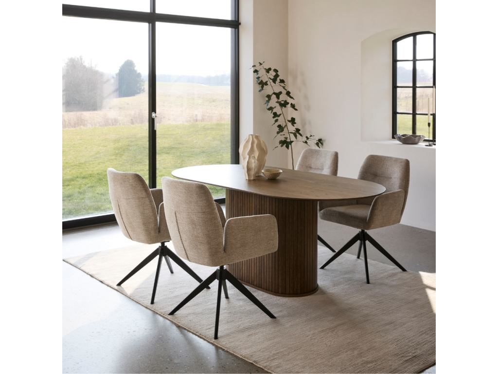 Kolem jídelního stolu se odehrávají ty nejdůležitější chvíle – sdílený smích, upřímné rozhovory i malé každodenní radosti. Jídelní stůl Nola od značky Unique Furniture je navržen tak, aby se stal pevným základem všech těchto okamžiků. Na první pohled zaujme svou originální podnoží se žebrovaným motivem, která dodává celému stolu výrazný charakter a moderní eleganci. Prostorná deska z dubové dýhy pak nabízí pohodlí až pro šest osob – ideální pro rodinné oslavy, večery s přáteli nebo klidné chvíle, kdy si vychutnáváte večeři jen ve dvou. Stůl Nola je navržen tak, aby byl centrem dění a zároveň estetickým prvkem, který podtrhne váš osobní styl. Navíc je vyroben ze dřeva s certifikací FSC®, což zaručuje, že pochází z odpovědně obhospodařovaných lesů s ohledem na přírodu i lidi. A pokud toužíte po dokonale sladěném interiéru, kolekce Nola nabízí i další kousky ve stejném designovém duchu. Společně vytvoří harmonii, která promění vaši jídelnu v místo, kde se budete vždy rádi scházet.