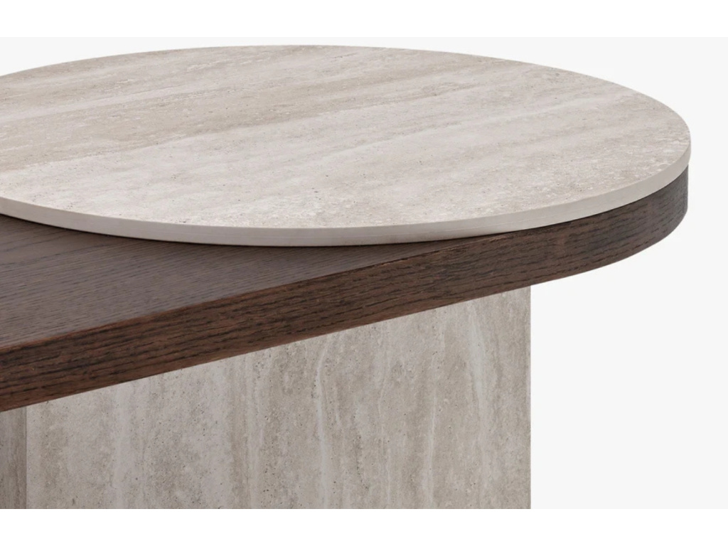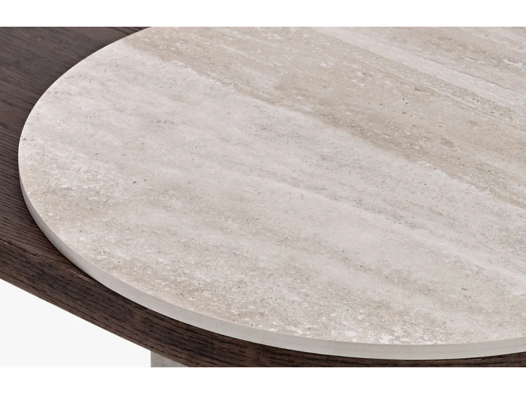 Konferenční stolek Eularia od značky MICADONI zaujme už na první pohled svou sochařskou elegancí a dokonalým kontrastem materiálů. Kombinace tmavé dubové dýhy a elegantní keramické desky vytváří harmonii přírodního tepla a moderní elegance. Jeho čisté linie a oválný tvar přinášejí do prostoru klid a harmonii. Ať už na něj položíte oblíbenou knihu, designovou vázu nebo ho necháte zcela čistý, Eularia vždy působí promyšleně a stylově – jako přirozený středobod místnosti. Perfektně zapadne do interiérů laděných v duchu minimalismu, skandinávského i japandi stylu. Je to ideální volba pro ty, kteří hledají nejen funkční nábytek, ale i nadčasový kousek s osobitým charakterem.