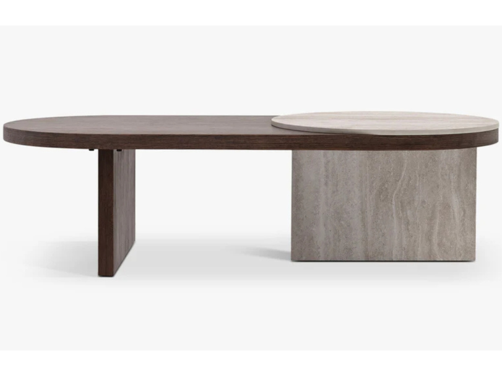 Více infoTmavý dubový konferenční stolek Eularia 120 x 55 cm s kamennou deskou