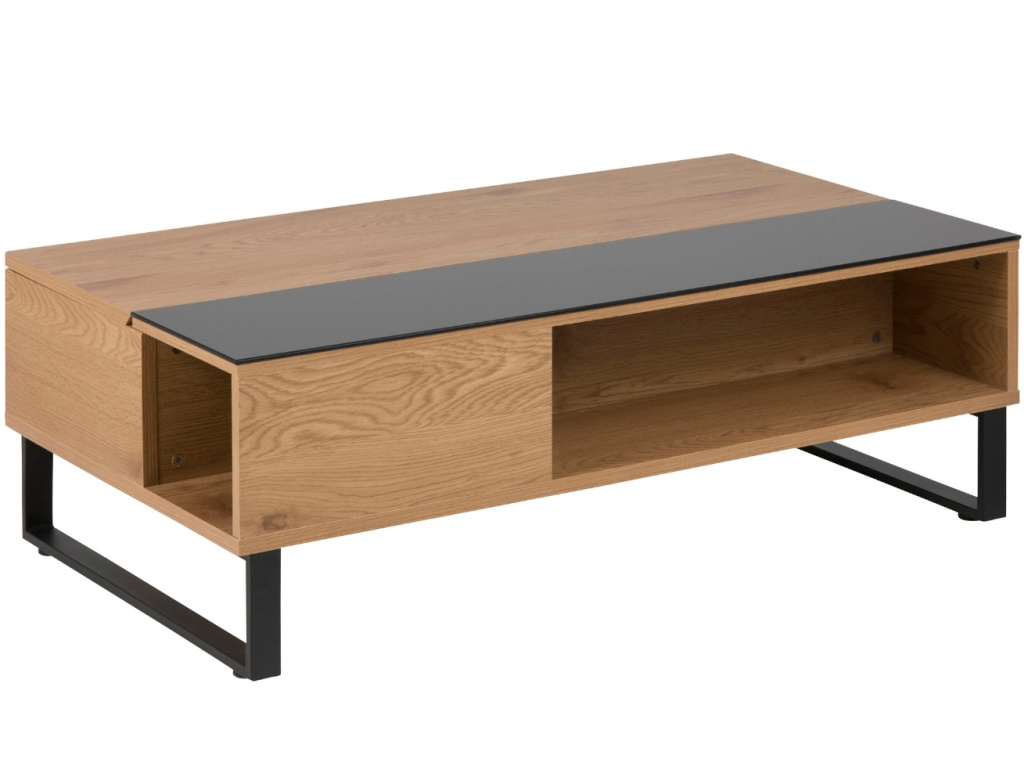 Tmavý dubový konferenční stolek Stor II nabízí výrazně více funkcí a možností použití, než byste čekali. Stolovou desku lze zvednou a vytvořit tím další praktický prostor, například pro práci na notebooku. Pod deskou se navíc nachází další úložný prostor, který lze využít na časopisy či další maličkosti. Parádní designový kousek, který se hodí spíše do moderních interiérů.