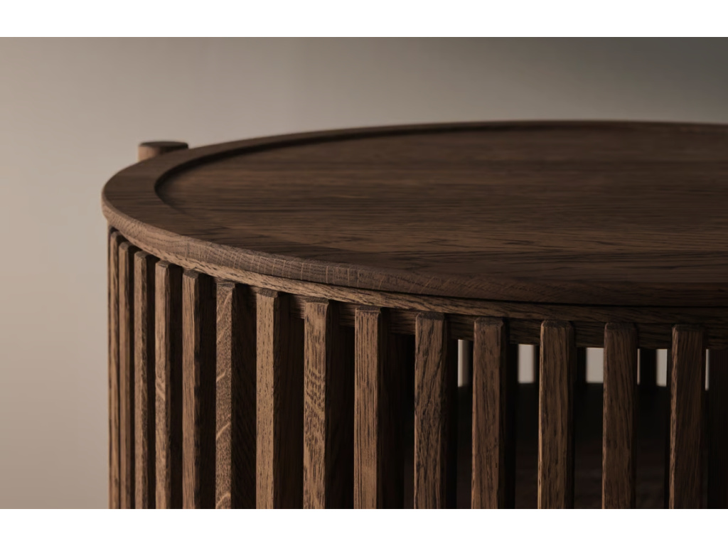 Autorkami konferenčního stolku Story jsou dánské designérky Anna Karnov a Clara Mahler, které se při tvorbě zaměřili na vytvoření nadčasového designu, který by byl nejen krásný, ale také funkční a dlouhotrvající. Zároveň se soustředily, aby jejich stolky měly schopnost přizpůsobit se měnícím se potřebám a přáním majitelů. Stolek je charakteristický přední částí tvořenou elegantními dřevěnými sloupky, které vytvářejí prostor, jenž je dostatečně otevřený, aby ukázal vaše oblíbené předměty, ale zároveň dostatečně zakrytý, aby je jemně skrýval. Tento hravý kontrast mezi otevřeným a uzavřeným prostorem přináší do vašeho interiéru zajímavý vizuální prvek. Story je vyroben z FSC® certifikovaného dubového dřeva, což znamená, že dřevo pochází z lesů, které jsou obhospodařovány šetrně a zodpovědně. Kvalitní řemeslné zpracování je patrné v každém detailu a každý stolek je navržen tak, aby byl krásný a funkční po mnoho let.