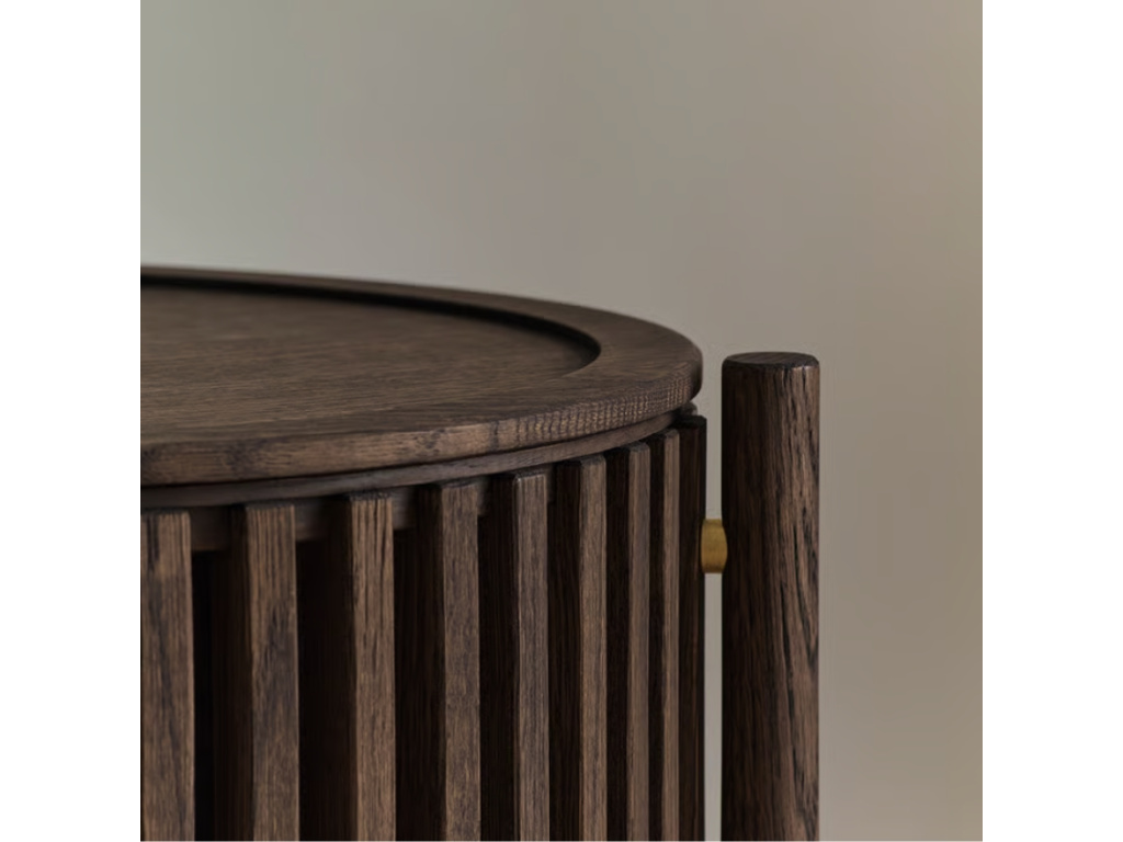 Autorkami odkládacího stolku Story jsou dánské designérky Anna Karnov a Clara Mahler, které se při tvorbě zaměřili na vytvoření nadčasového designu, který by byl nejen krásný, ale také funkční a dlouhotrvající. Zároveň se soustředily, aby jejich stolky měly schopnost přizpůsobit se měnícím se potřebám a přáním majitelů. Stolek je charakteristický přední částí tvořenou elegantními dřevěnými sloupky, které vytvářejí prostor, jenž je dostatečně otevřený, aby ukázal vaše oblíbené předměty, ale zároveň dostatečně zakrytý, aby je jemně skrýval. Tento hravý kontrast mezi otevřeným a uzavřeným prostorem přináší do vašeho interiéru zajímavý vizuální prvek. Story je vyroben z FSC® certifikovaného dubového dřeva, což znamená, že dřevo pochází z lesů, které jsou obhospodařovány šetrně a zodpovědně. Kvalitní řemeslné zpracování je patrné v každém detailu a každý stolek je navržen tak, aby byl krásný a funkční po mnoho let.