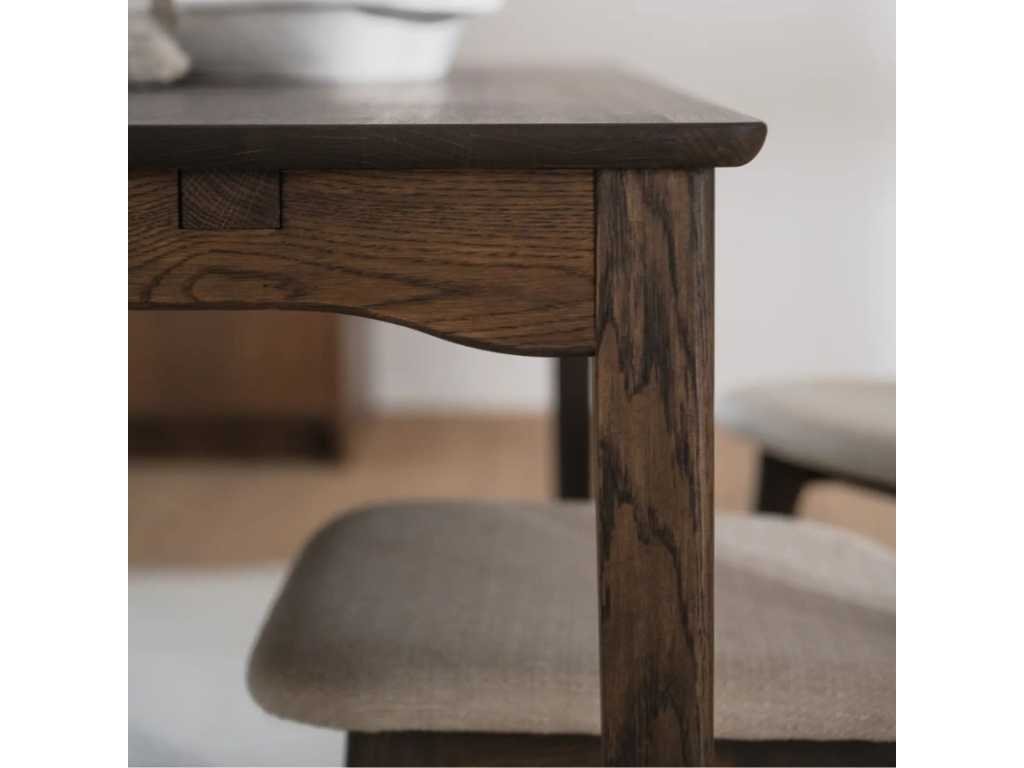 Rozkládací jídelní stůl MARKHAM od značky ROWICO spojuje jedinečný skandinávský design s prvotřídním zpracováním z masivního dubového dřeva ošetřeného tmavým olejem. Stůl nese certifikaci FSC®, což zaručuje, že jeho výroba probíhala s ohledem na životní prostředí. Stůl můžete umístit do skandinávsky i minimalisticky zařízených jídelen, slušet mu to bude také s jídelními židlemi světlejších barev. MARKHAM lze jednoduše rozšířit z původní délky 180 cm na 225 a 270 cm, což jistě oceníte zejména při větších rodinných setkáních či oslavách. Pro jednotný vzhled můžete tento kousek sladit s toaletním stolkem MARKHAM.