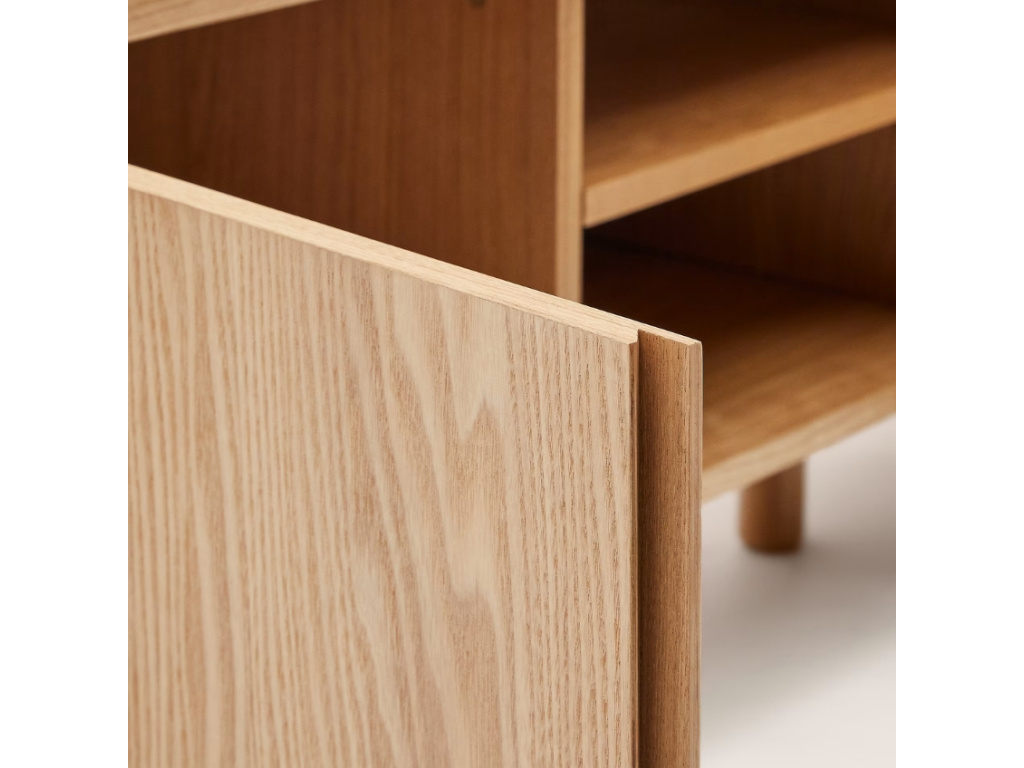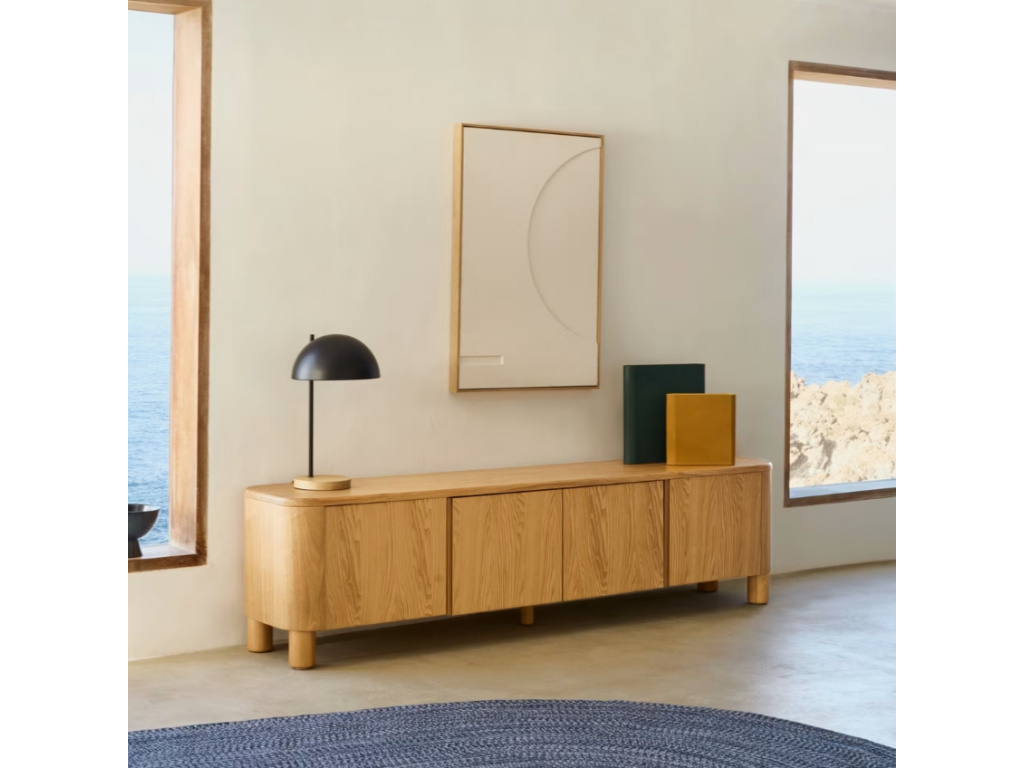 Úložné prostory ve vašem interiéru můžete vyřešit se sérií Kave Home Salaya! Najdete v ní komody, skříň, TV stolek i noční stolek – sladěná tak může být celá vaše domácnost. Elegantní zaoblené tvary společně s výraznou přírodní kresbou vybraný prostor zútulní a jen tak nevyjdou z módy. Ať už preferujete rustikální nebo scandi styl, do obou tyto designovky skvěle zapadnou. Prostorný TV stolek o šířce 200 cm nabídne úložný prostor v podobě 6 polic, které jsou uschovány za čtveřicí dvířek se soft-close zavíráním. Uschovejte do něj videokazety, DVD, knihy nebo alba s fotografiemi – zkrátka cokoliv, co vás napadne.