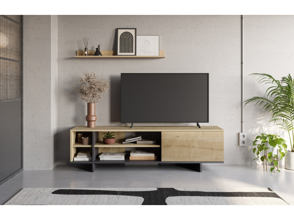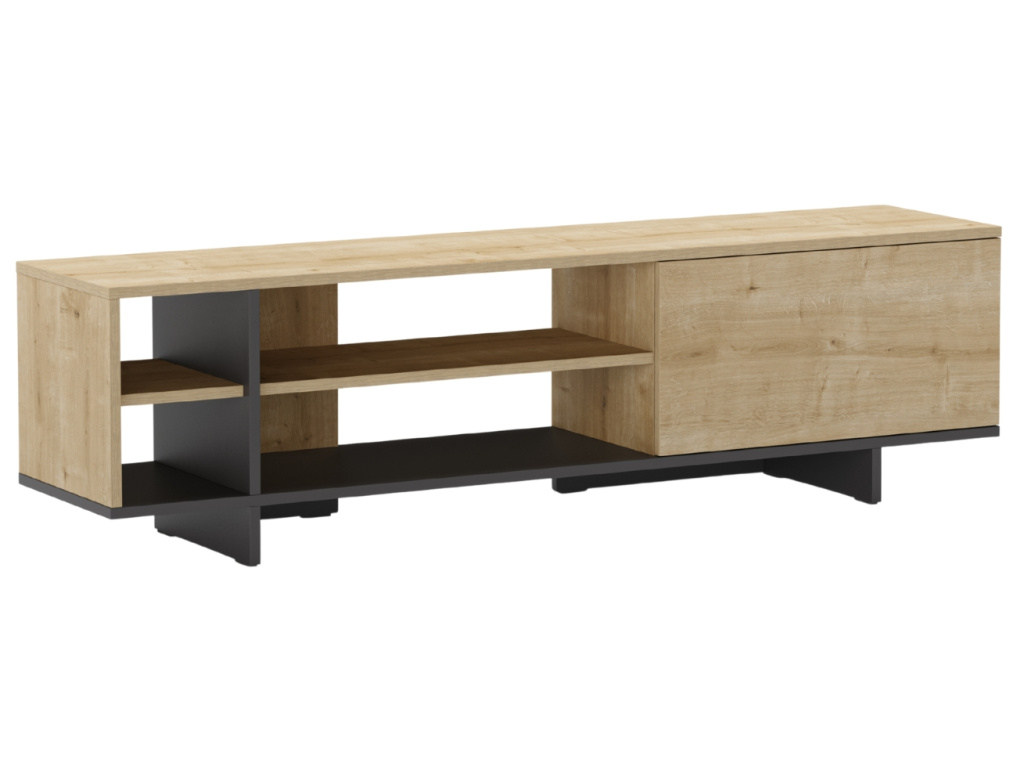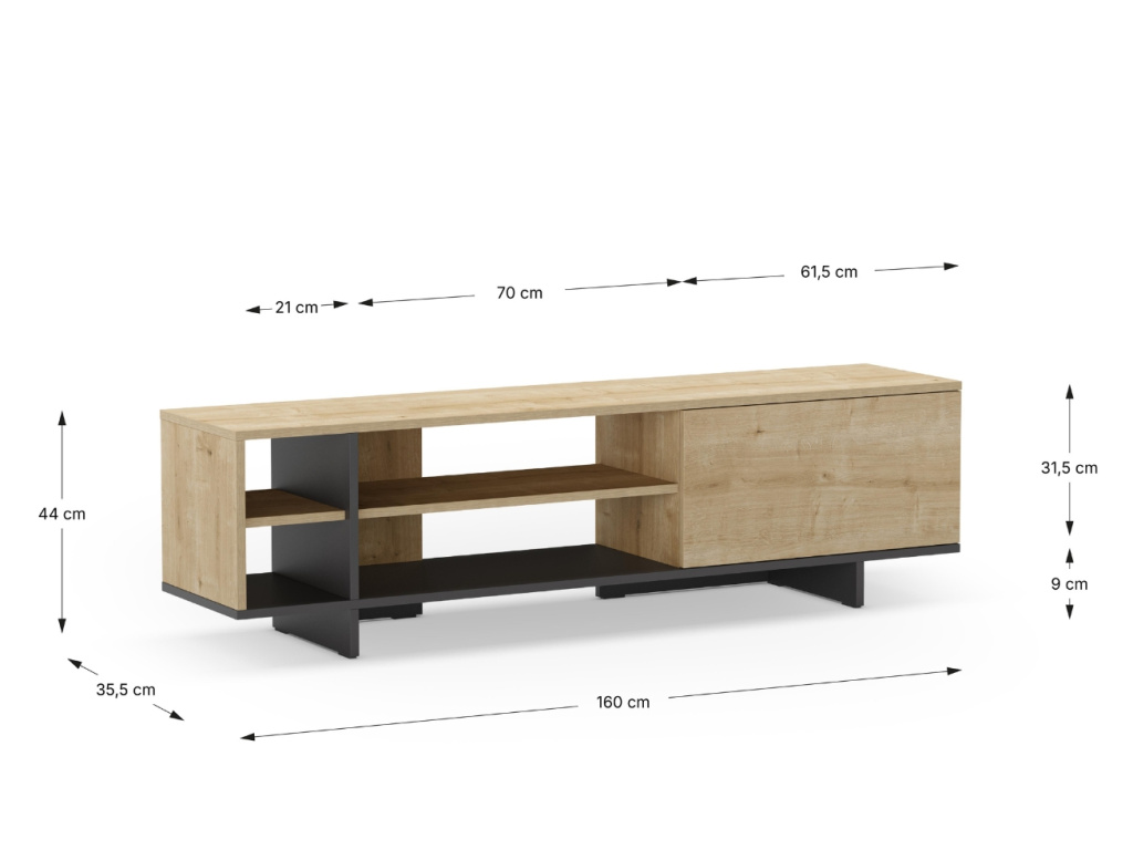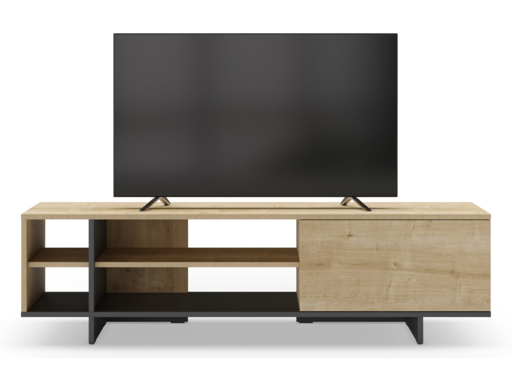 TV stolek Cequoia v kombinaci dubového dekoru a černého laminátu zaujme čistými liniemi a vzdušným dojmem. Otevřené police nabízejí praktický prostor pro elektroniku i dekorace, zatímco výklopná skříňka se skrytým otvorem na kabely zajistí elegantní řešení bez rušivých detailů. Díky stabilní konstrukci a odolným materiálům vydrží každodenní používání. K dispozici je ve dvou rozměrech a dvou barevných variantách.