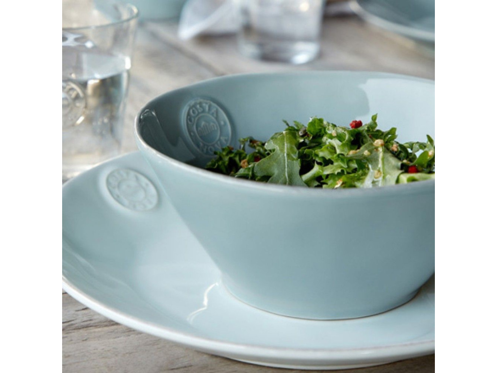 Jemná elegantní tyrkysová miska s logem COSTA NOVA. Lesklá glazura svými odlesky zvýrazní podávaný pokrm. Praktická servírovací miska na polévky či saláty. Perfektně ladí do tradičních venkovských či plážových interiérů.