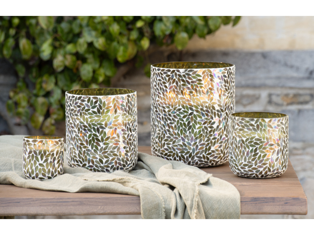 Vonná svíčka Erbo od značky J-line roznese po místnosti příjemnou vůni orientálních čajů a bylin a bude vám dělat radost až 120 hodin. Elegantní skleněnou nádobku zdobenou zeleným mozaikovým vzorem můžete po vyhoření vosku znovu použít. Stačí do nádobky vložit čajovou svíčku a vznikne vám originální svícen. V našem sortimentu naleznete také další velikosti této svíčky.
