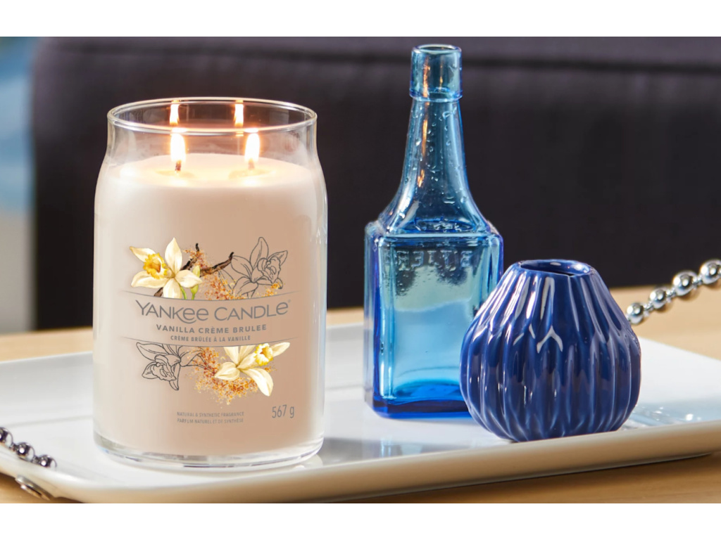 S velkou vonnou svíčkou Yankee Candle Crème Brûlée navodíte atmosféru, jako byste se zakousli do lahodného vanilkového krému a křupavého karamelizovaného cukru s tóny skořice. Pokud na vás dopadá studené, podzimní počasí, zapalte si Yankee Candle a nechte se rozmazlovat příjemným teplem a vůní. Sladké a kořeněné aroma svíčky Crème Brûlée obsahuje skořici, červené ovoce, pomeranče a vanilku.
