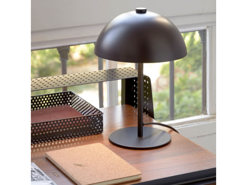 Kovová stolní lampa Kave Home Aleyla bude skutečnou ozdobou každého stylového interiéru. Podstava je vyrobená z černě lakovaného kovu, který skvěle ladí s vínově lakovaným stínidlem v tradičním tvaru. Kabel potažený látkou má klasický systém zapínání lampy. Aleyla se hodí do moderních interiérů s tmavými prvky.
