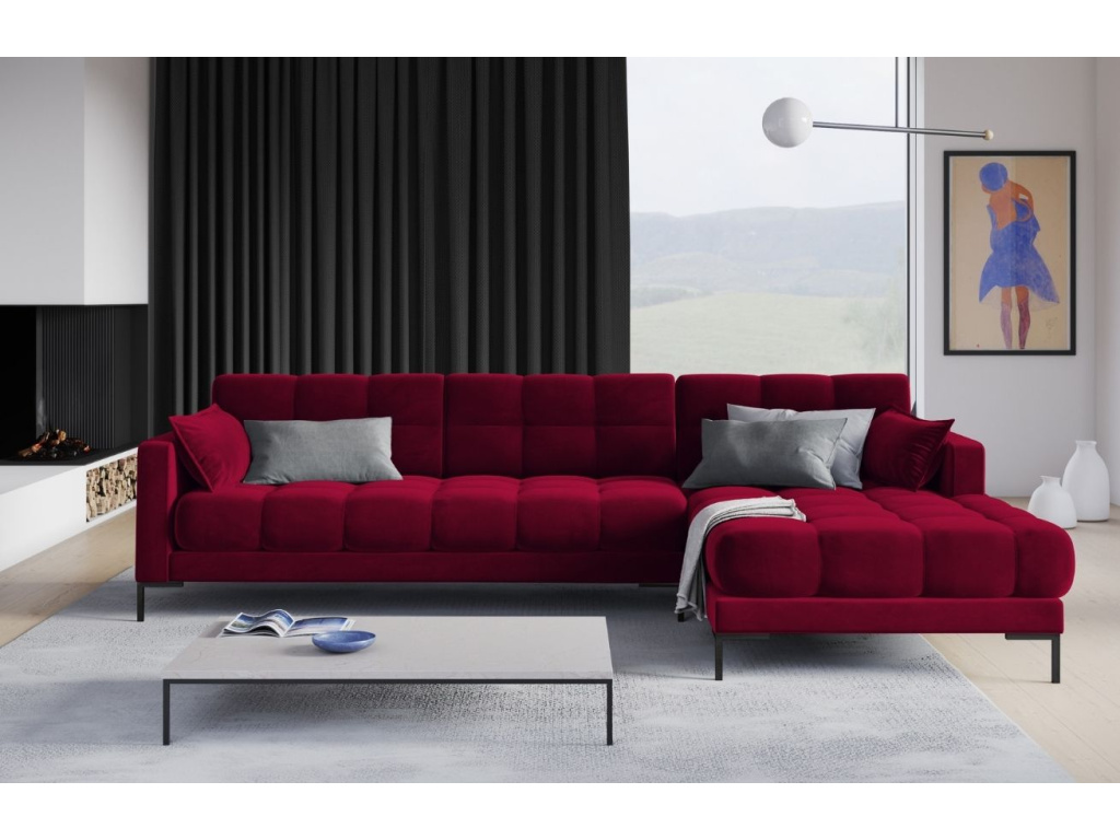 Elegantní rohová pohovka MICADONI MAMAIA zaujme na první pohled svým nadýchaným vzhledem. Velmi příjemné sametové čalounění a kovová podnož vytváří kontrast, který interiéru dodá elegantní vzhled a nádech luxusu. Díky zajímavému prošívání vzniká jemný design, který do vašeho domova vnese lehkost a styl. Opěrné polštářky zvednou úroveň vašeho odpočinku o stupeň výš. Nechte se obklopit komfortem ve společnosti produktů Mamaia.