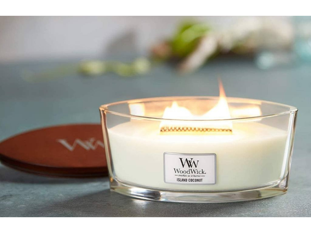Vonná svíčka WoodWick Island Coconut je vyrobena ze směsi prémiového parafínu a sójového vosku s vysoce koncentrovanými vůněmi, zároveň zajišťuje čisté hoření bez nepříjemných zbytků. Díky jedinečnému knotu z přírodního dřeva budete mít pocit, jako byste právě seděli u hořícího krbu. Jemný zvuk praskání, dlouhý tančící plamen a přívětivá vůně jemných květů vanilky ve spojení se svěžím ananasem a krémovým kokosem vytvoří u vás doma harmonickou senzaci.
