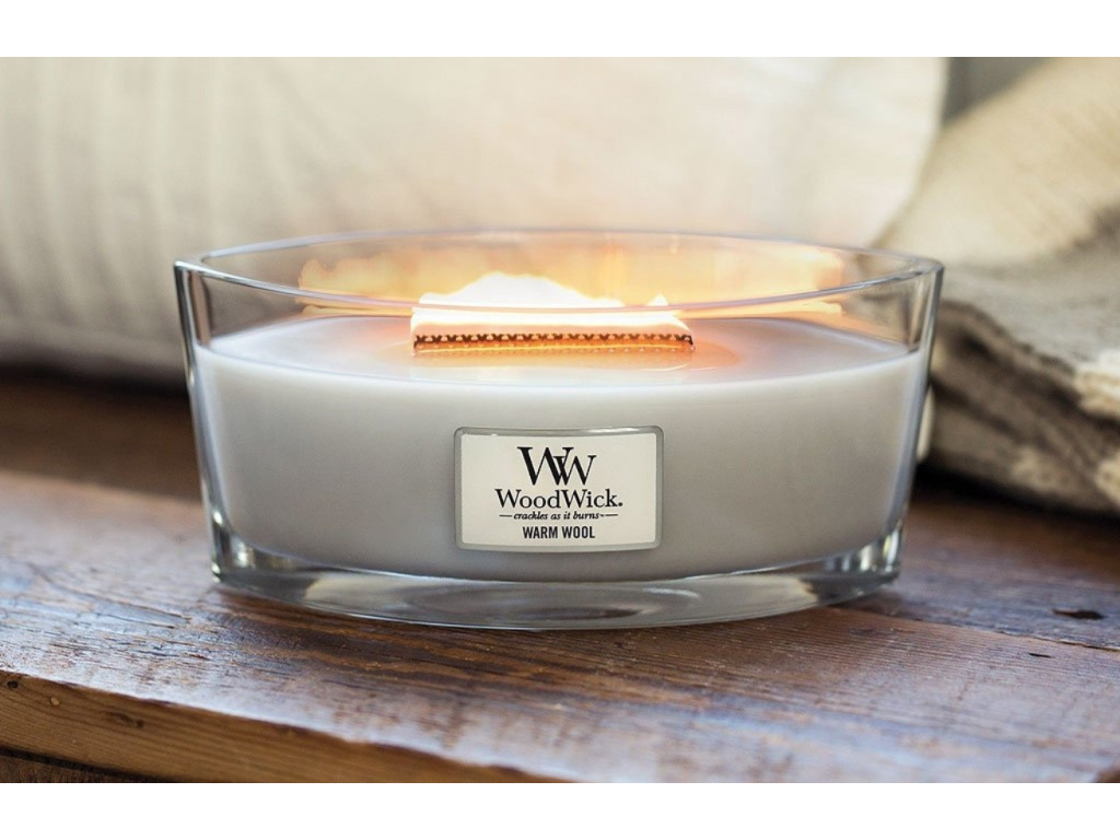 Vonná svíčka WoodWick loď, Warm Wool