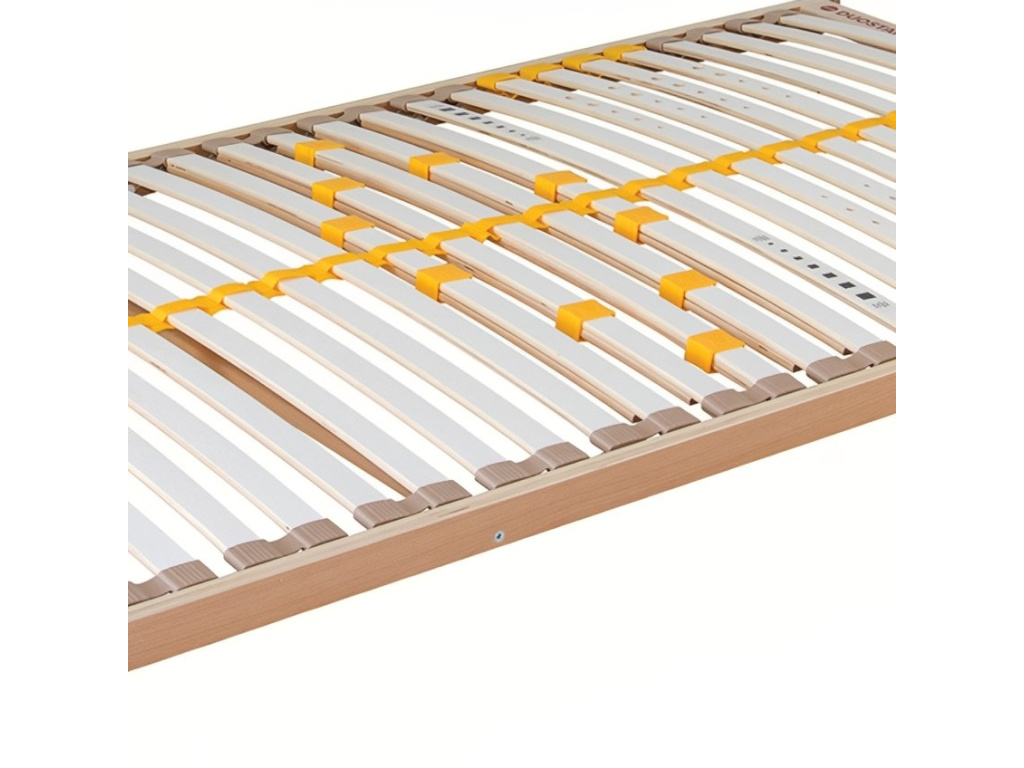 Lamelový rošt Duostar s výklopem nožní části se postará o váš pohodlný spánek. Vyklápí se pomocí pístu a umožní vám pohodlný přístup do celého úložného prostoru. Ten můžete využít nejen na lůžkoviny, ale i na sezónní oblečení nebo třeba hračky. Jeho pružné lamely jsou rozložené v 5 anatomických zónách a pomocí posuvných objímek snadno nastavíte tuhost v bederní části. Díky fólii, kterou jsou lamely opatřené, se pod matrací zachytává méně prachu a nedochází k přenášení vlhkosti z matrace do roštu – Duostar je tak skvělou volbou i pro alergiky!