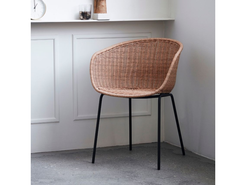Nová jídelní židle Hapur vnese přirozenost a vzdušnost do vaší domácnosti. Skvěle se bude vyjímat v klasickém i moderním interiéru. Kombinace přírodního sedáku a černé kovové podnože zaujme na první pohled. Pohodlnou židli můžete využít v kuchyni, obývacím pokoji či na terase.