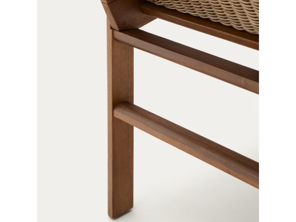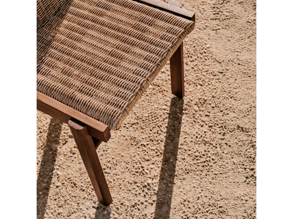 Série zahradního nábytku Inari, to je dokonalá souhra elegance a odolnosti. Každý kus této kolekce – židle, křeslo i lehátko – byl navržen tak, aby ladil s interiéry i exteriéry a poskytoval maximální komfort i estetickou hodnotu moderního designu. Konstrukce je vyrobena z masivního akátového dřeva s certifikací FSC, které zaručuje odpovědné hospodaření v lesích. Sedadla a opěradla jsou ručně tkaná ze syntetického ratanu, který dokonale napodobuje přírodní materiál, ale zároveň je vysoce odolný vůči povětrnostním vlivům a snadno se čistí. Nábytek Inari je ideální volbou pro ty, kteří hledají spojení přírodního vzhledu, funkčnosti a vysoké kvality.