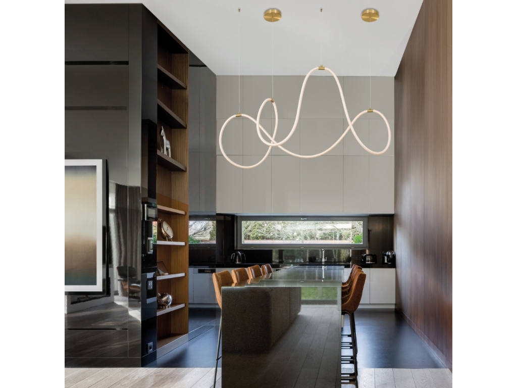 Závěsné LED světlo Cerelia od značky Nova Luce je charakteristické svým jedinečným oblým tvarem připomínající zakončenou křivku. Jeho originální stínidlo je vyrobeno ze silikonové trubice, která v kombinaci s kovovým zavěšením ve zlatém odstínu vytváří ze světla zcela unikátní prvek. Rozhodně svou velikostí a elegantním designem upoutá pozornost každé vaší návštěvy. Stane se stylovým doplňkem v každém moderním interiéru, ve kterém zároveň dokáže vykouzlit příjemnou atmosféru.