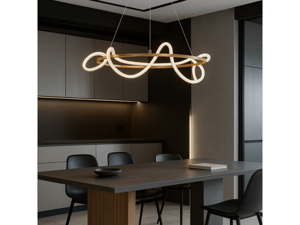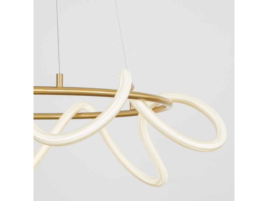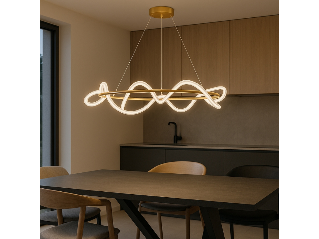 Závěsné LED světlo Cerelia od značky Nova Luce je charakteristické svým jedinečným oblým tvarem připomínající zakončenou křivku. Jeho originální stínidlo je vyrobeno ze silikonové trubice, která v kombinaci s kovovým zavěšením ve zlatém odstínu vytváří ze světla zcela unikátní prvek. Rozhodně svou velikostí a elegantním designem upoutá pozornost každé vaší návštěvy. Stane se stylovým doplňkem v každém moderním interiéru, ve kterém zároveň dokáže vykouzlit příjemnou atmosféru.