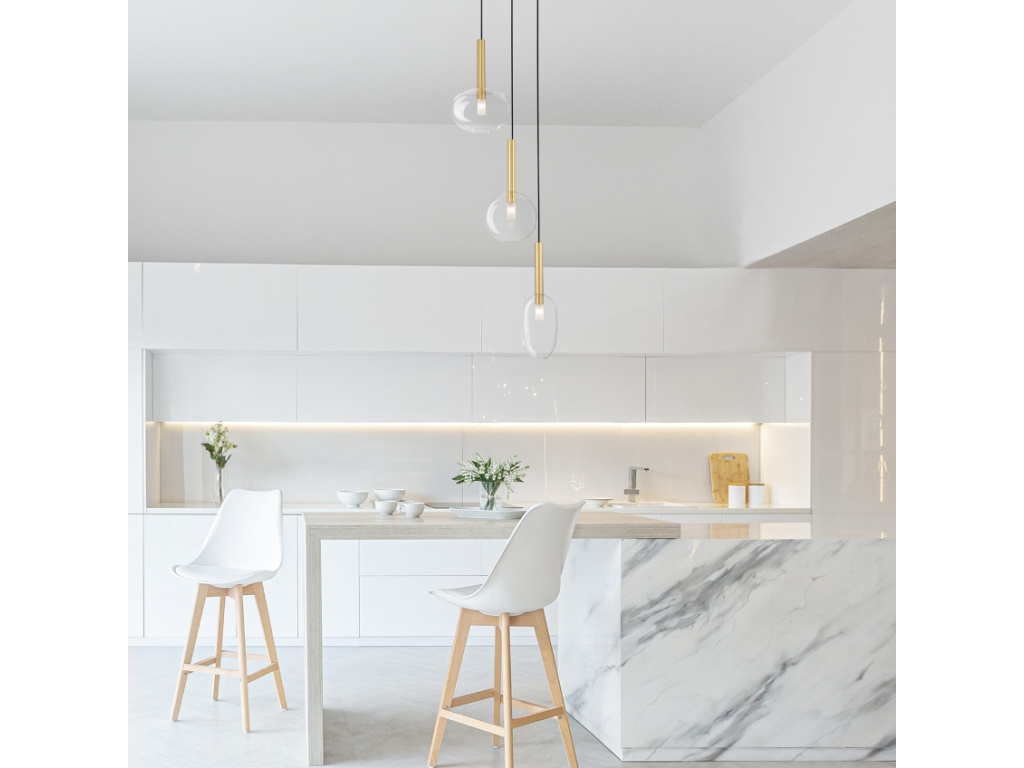 Závěsné světlo Amelia od Nova Luce vás okouzlí svojí elegancí a sofistikovaným designem. Jeho stínidla jsou vyrobena z transparentního skla v kulatých a oválných tvarech, které dokonale ladí s rovným kovovým zavěšením ve zlaté barvě. Svítidlo lze doplnit dekorativními žárovkami, které díky průhlednosti skla krásně vyniknou a budou vytvářet příjemné osvětlení. Světlu Amelia to bude slušet v moderních i severských interiérech například nad kuchyňským ostrůvkem či jídelním stolem.