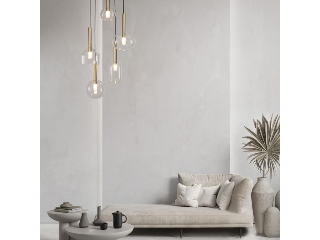 Závěsné světlo Amelia od Nova Luce vás okouzlí svojí elegancí a sofistikovaným designem. Jeho stínidla jsou vyrobena z transparentního skla v kulatých a oválných tvarech, které dokonale ladí s rovným kovovým zavěšením ve zlaté barvě. Svítidlo lze doplnit dekorativními žárovkami, které díky průhlednosti skla krásně vyniknou a budou vytvářet příjemné osvětlení. Světlu Amelia to bude slušet v moderních i severských interiérech například nad kuchyňským ostrůvkem či jídelním stolem.