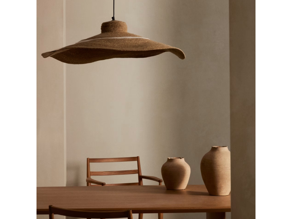 Okořeňte váš obývací pokoj či ložnici originálním závěsným světlem Albenya od Kave Home, které vašemu domovu dodá rustikální nádech. Stínidlo je vyrobeno z přírodních vláken a svým jedinečným tvarem může připomínat velký plážový klobouk. Ten decentně doplňuje bílý bavlněný proužek. Díky širokému stínidlu světlo vydává krásné atmosférické světlo a příjemně osvítí celou místnost.