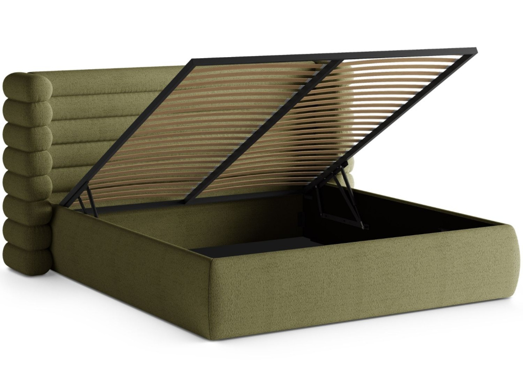 Postel Mount je výrazným designovým prvkem, který v ložnici okamžitě vytvoří pocit útulnosti a klidu. Její ikonické čelo s měkkým, plastickým tvarováním připomíná vrstvy jemné pěny a v kombinaci s bouclé látkou působí hřejivě a příjemně. Tvarovaná opěrka hlavy s bočními „křídly“ dodává posteli charakter a zároveň vytváří pocit většího soukromí. Čalounění z látky Coral zaujme bohatou strukturou, jemným leskem a hebkým povrchem, který je příjemný na dotek i vhodný pro každodenní používání. Pod matrací se nachází praktický úložný prostor, do kterého se snadno dostanete jednoduchým nadzvednutím roštu. Postel Mount se hodí do moderních, skandinávských i minimalistických interiérů a je dostupná v různých rozměrech, barevných variantách i typech látek.