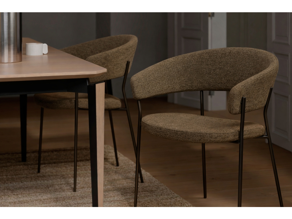 Jídelní židle Reboot zaujme svým čistým a vyváženým designem, který kombinuje nadčasovou eleganci s moderním minimalismem. Jemně zakřivené opěradlo s integrovanými područkami vytváří útulné a ergonomické posezení, zatímco subtilní kovová podnož dodává celé siluetě lehkost. Reboot je kouskem, který přirozeně zapadne do každého interiéru – od skandinávsky laděné jídelny po moderní městský byt. Navržena pro pohodlí i každodenní styl, tato židle ztělesňuje rovnováhu mezi estetikou a funkčností.