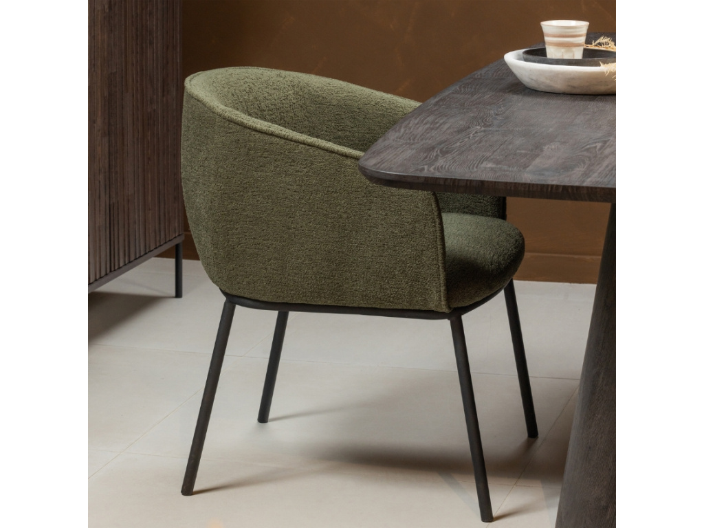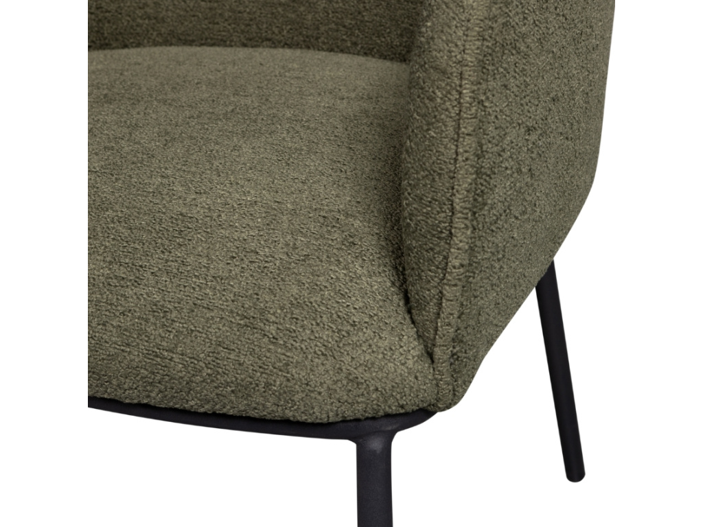 Designová jídelní židle Lenny od značky Hoorns bude tou pravou do vaší stylové kuchyně. Měkký sedák a obloučkové opěradlo jsou čalouněny bouclé látkou se zajímavou texturou a nabízí tak pohodlí i při dlouhém posezení u jídelního stolu. Její subtilní design s tenkou kovovou podnoží v černém laku se bude skvěle vyjímat v široké řadě interiérových stylů – od klasicky, přes moderně až po vintage laděné interiéry. Lze ji použít i k toaletnímu stolku nebo do pracovny. V nabídce také v dalších barevných variantách.