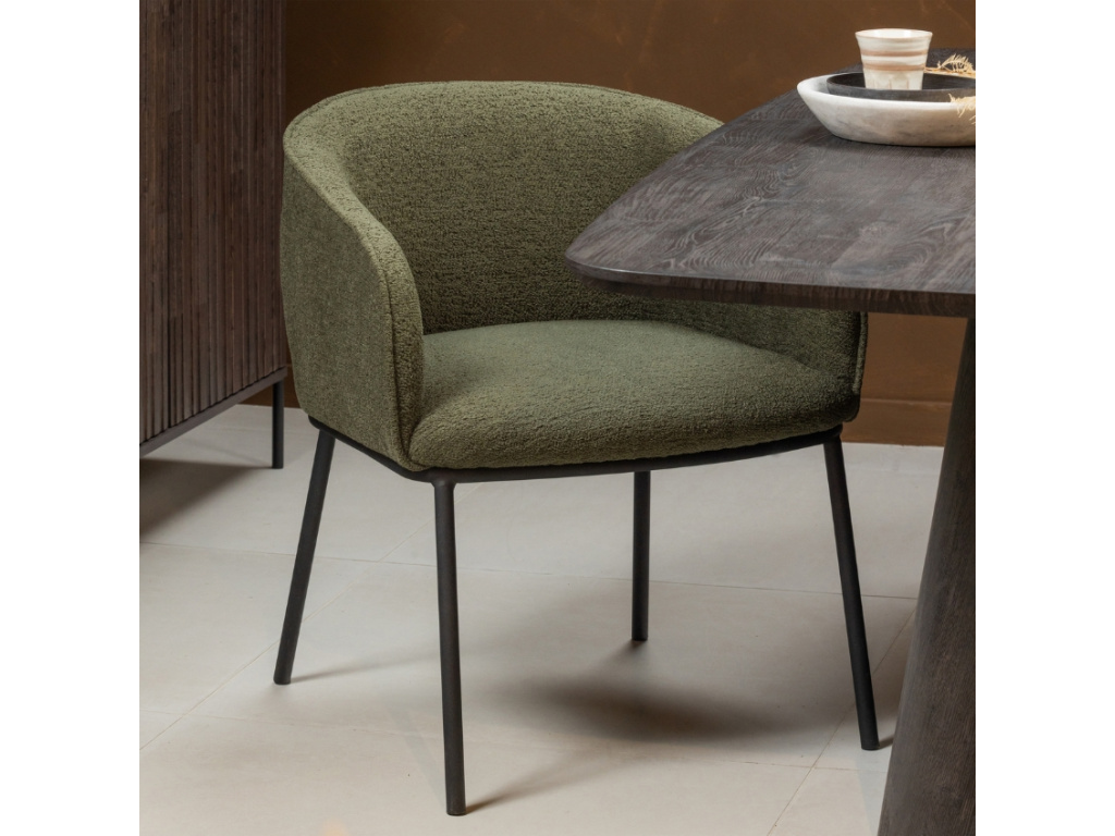 Designová jídelní židle Lenny od značky Hoorns bude tou pravou do vaší stylové kuchyně. Měkký sedák a obloučkové opěradlo jsou čalouněny bouclé látkou se zajímavou texturou a nabízí tak pohodlí i při dlouhém posezení u jídelního stolu. Její subtilní design s tenkou kovovou podnoží v černém laku se bude skvěle vyjímat v široké řadě interiérových stylů – od klasicky, přes moderně až po vintage laděné interiéry. Lze ji použít i k toaletnímu stolku nebo do pracovny. V nabídce také v dalších barevných variantách.