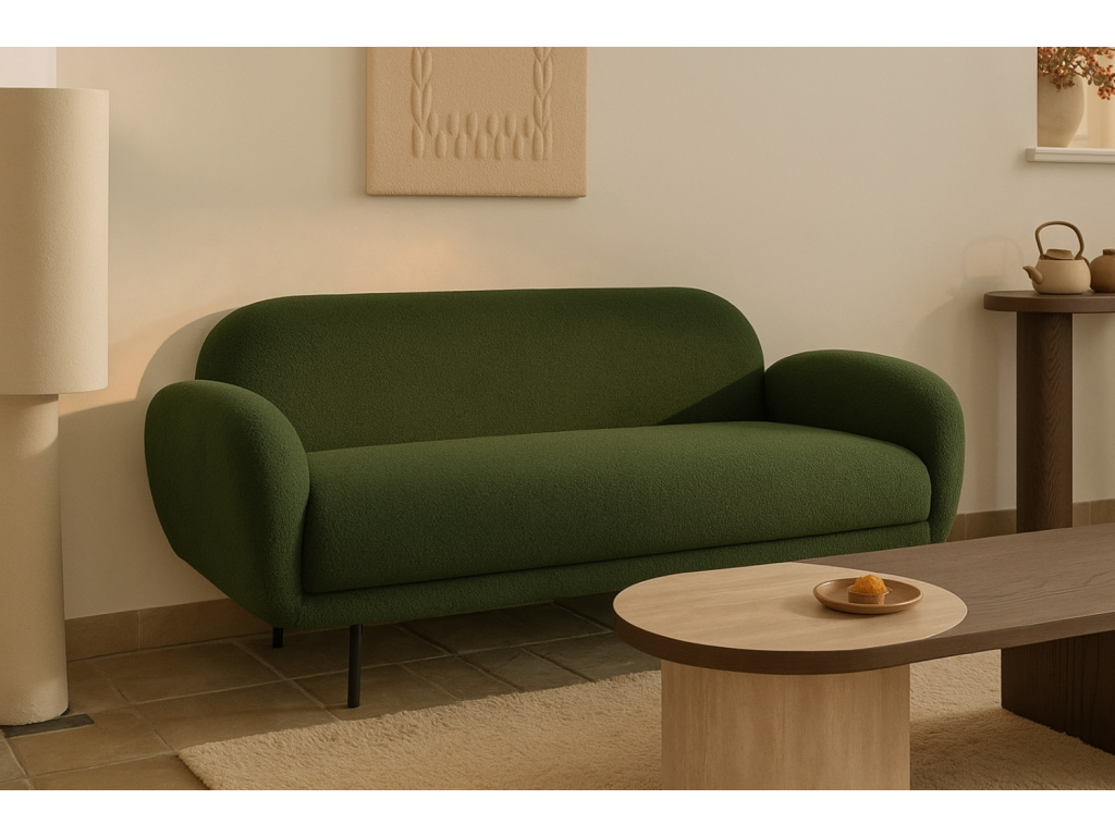 To chciZelená bouclé trojmístná pohovka Poppy 208 cm