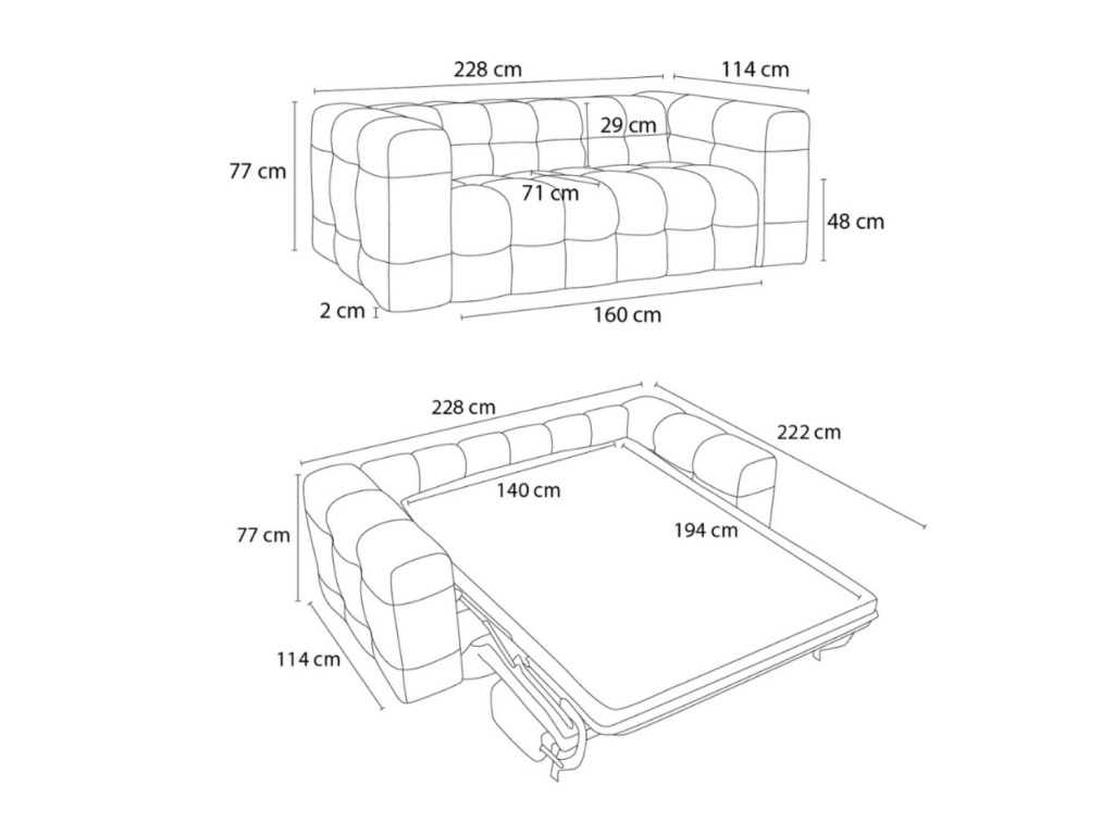 Pohovka Cloud od značky Bobochic Paris je dokonalou kombinací stylu, pohodlí a praktičnosti. Na první pohled okouzlí měkkými, oblými liniemi, širokými područkami a jemně prošívaným sedákem, který působí lehce, přívětivě a vytvářejí pocit dokonalého uvolnění. Bouclé látka dodává pohovce hřejivý a elegantní vzhled, přitom je skvěle přizpůsobená každodennímu používání – je odolná proti žmolkování i zatržení, takže si Cloud dlouhodobě zachová svůj krásný vzhled. O výjimečné pohodlí se stará kvalitní HR pěna s paměťovým efektem, která se dokonale přizpůsobí tělu, poskytuje příjemnou oporu a drží tvar i po letech používání. Cloud je ideálním místem pro relax, dlouhé večery i chvíle klidu jen pro vás. A když potřebujete víc prostoru, během několika vteřin ji snadno proměníte v pohodlné lůžko pro každodenní spaní. Stylová pohovka, která spojuje krásný design s opravdovým komfortem moderního domova.
