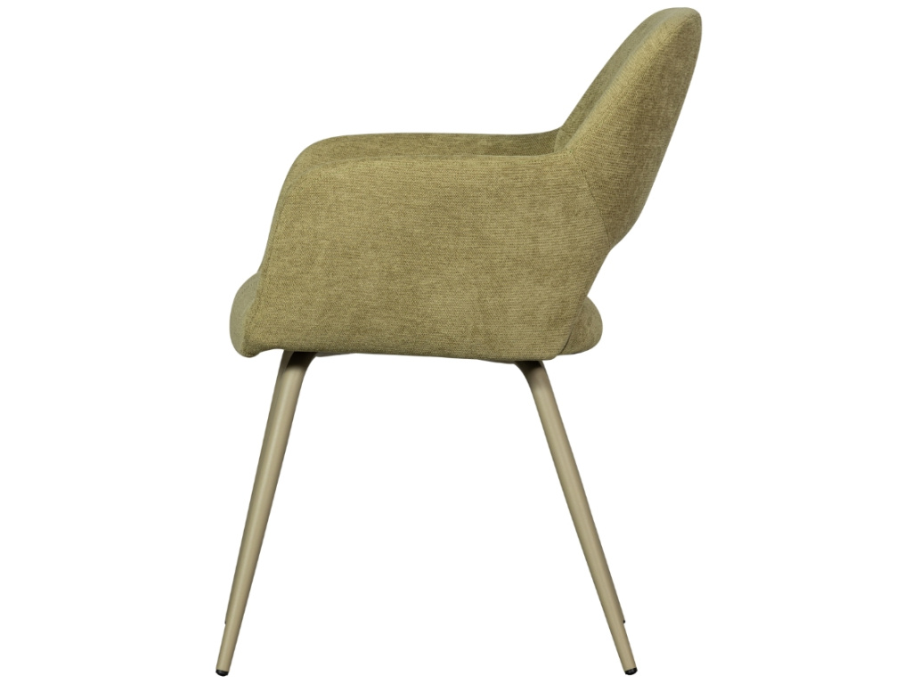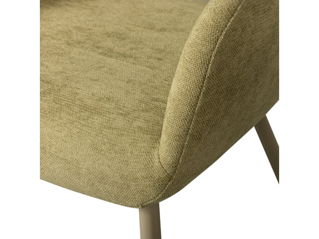 Jídelní židle Ginny se zeleným čalouněním a štíhlou kovovou podstavou ve stejném odstínu působí elegantně a nabídne vám pohodlné posezení. Hlavním materiálem je kvalitní tkanina se strukturou, která je ze 100% polyesteru, což velmi usnadňuje údržbu. Otěruvzdornost 50 000 Martindale zajistí maximální odolnost, područky zase pohodlí při dlouhém sezení. Židli můžete využít v jídelně, ale také u pracovního stolu. Do vašeho interiéru vnese moderní šmrnc se špetkou retro klasiky. Podívejte se u nás také na další barevné varianty.