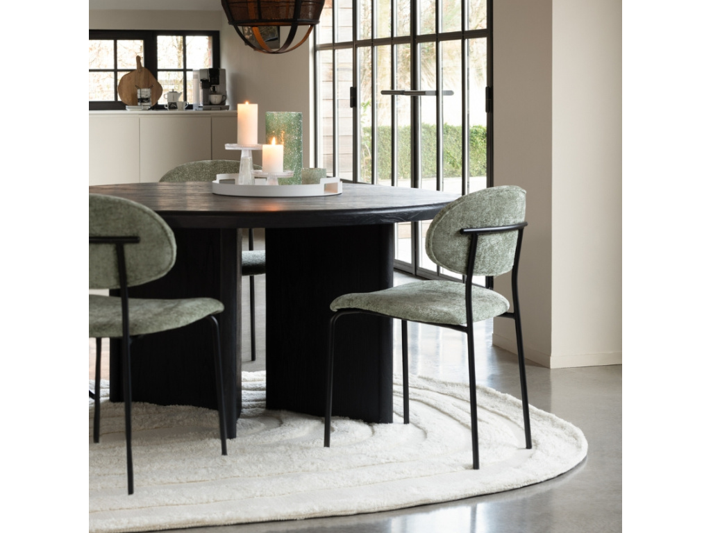 Usaďte se do jídelní židle Tuglo od značky J-line! Zelené čalounění zaručí to nejlepší pohodlí, zatímco černě práškovaná kovová podnož se postará o vysokou nosnost a stabilitu. Židle se bude perfektně vyjímat téměř v jakémkoliv interiéru, díky její barevné i materiálové neutralitě. Židli Tuglo můžete umístit k jídelnímu stolu do kuchyně nebo jídelny, případně jí libovolně umístit tam, kde potřebujete více místa na sezení.