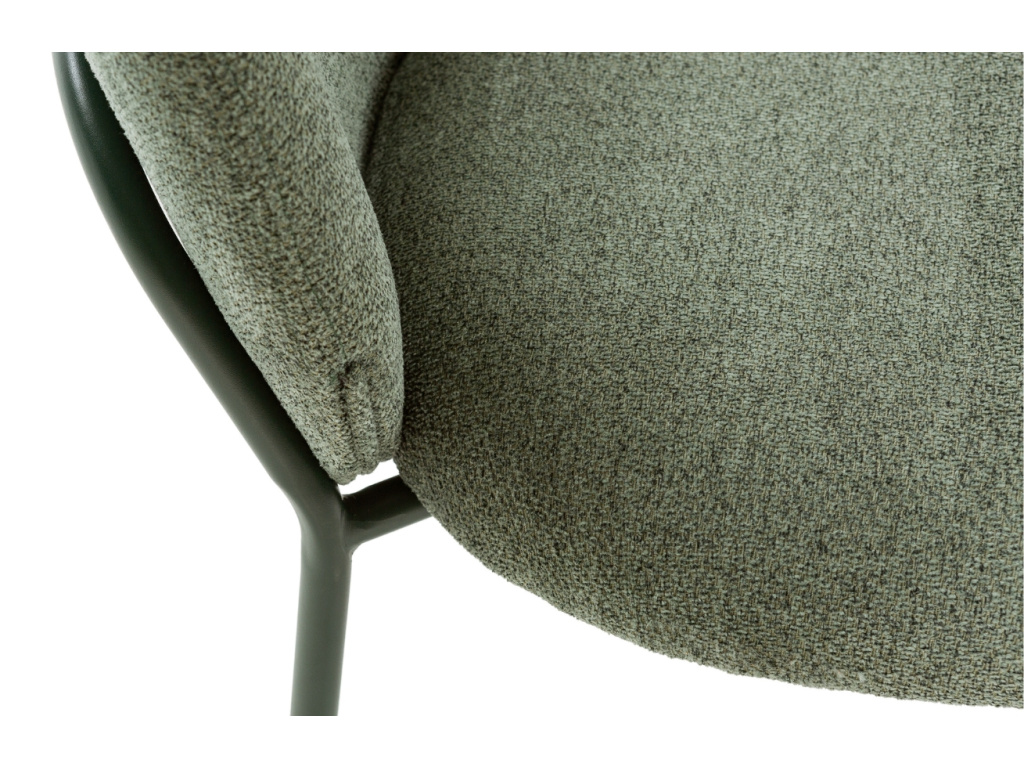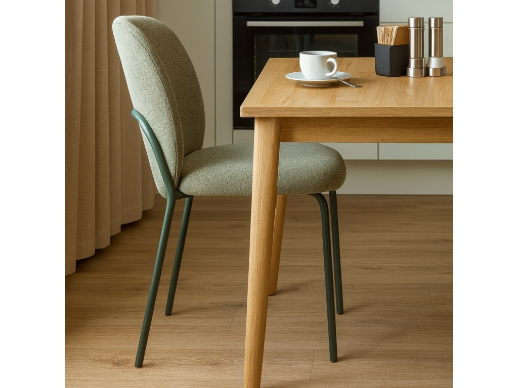 Židle Daia v tlumeně zelené barvě přináší do prostoru jemný dotek přírody s příjemně měkkým čalouněním. Jemně zakřivený rám v matné zelené navazuje na linie čalouněné opěrky a vytváří ikonický vizuální detail na její zadní straně. Skvěle zapadne do interiérů s retro akcentem i do čistě moderních prostor. Tento model je součástí kolekce tří barevných provedení židle Daia.