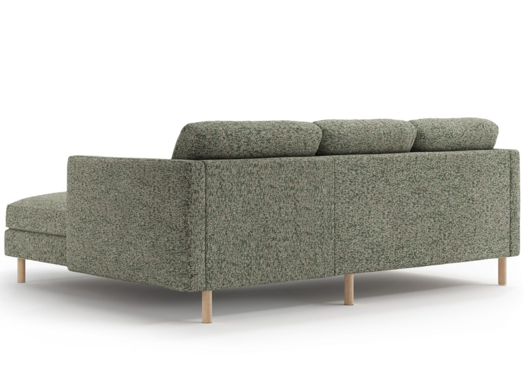 Rohová trojmístná pohovka Eden spojuje skandinávský design s výjimečným pohodlím a kompaktními rozměry. Díky čistým liniím, elegantním područkám a zaoblené dřevěné podnoži působí lehce a vzdušně, což z ní dělá ideální volbu do menších interiérů. Přestože nezabere mnoho místa, nabízí útulné a komfortní sezení, které vybízí k odpočinku. Sedací část je vyplněna přírodním peřím, které poskytuje měkkost a příjemnou oporu při každodenním lenošení. Látka Puente je skutečnou ozdobou této pohovky. Vzniká kombinací čtyř druhů přízí lišících se tloušťkou, barvou a charakterem, které společně vytvářejí bohatou a výraznou strukturu. Povrch je jemně členitý s drobnými výstupky, matný na pohled a příjemně hřejivý na dotek. Látka má více než stoletou tradici, ale díky moderním barevným kombinacím se snadno začlení do interiérů od klasických po současné. Pohovka Eden je pečlivě vyrobena na zakázku v Evropě, což zaručuje špičkovou kvalitu zpracování, vysokou odolnost a dlouhou životnost.