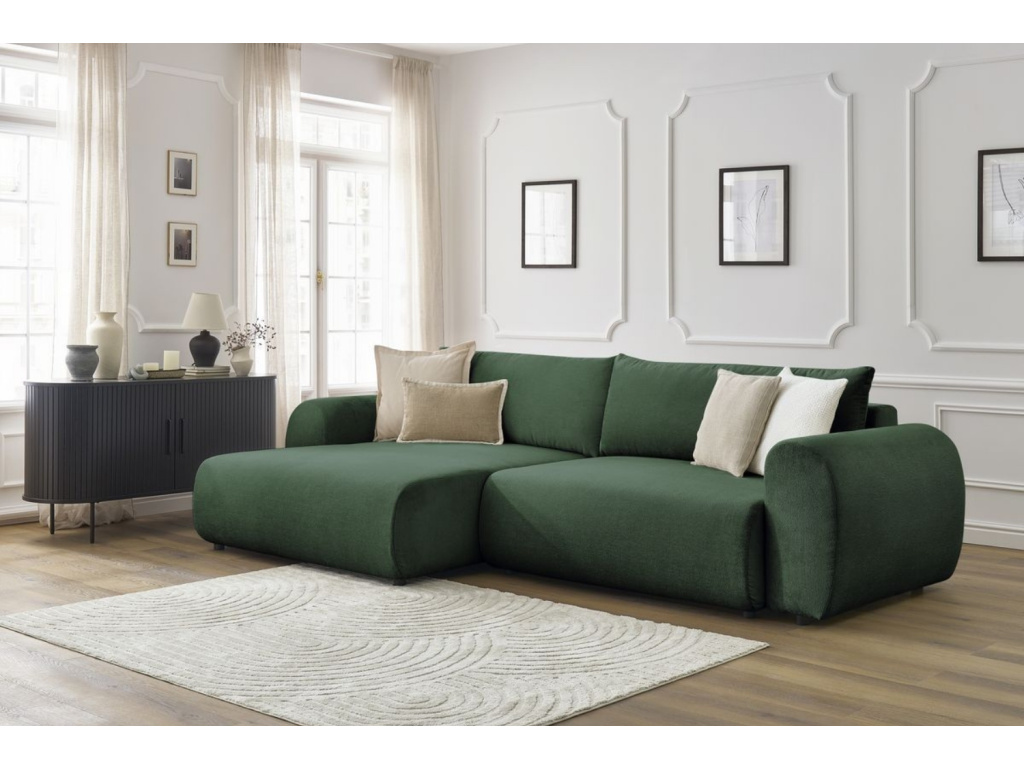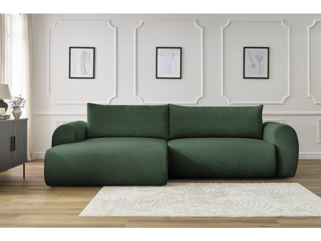 Vyberu siZelená rozkládací pohovka Lucien 314 cm, levá
