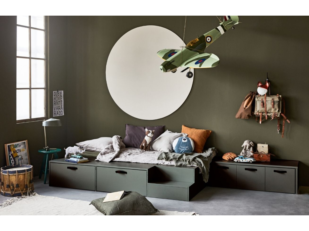Stylová lavice Erniest doplní dětský pokoj o moderní prvek a atraktivní design. Jejím největším bonusem je ale množství úložného prostoru, který se v dětském světě rozhodne hodí. Tři velké zásuvky jsou postavené na praktických kolečkách a zdobí je hnědé kožené úchyty. Skvěle se také hodí k posteli ze stejné řady a společně dají dětskému pokoji nádech moderního stylu.