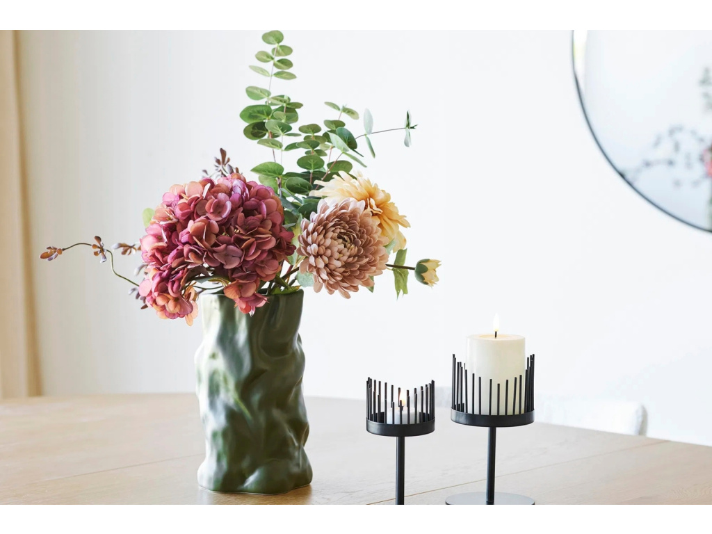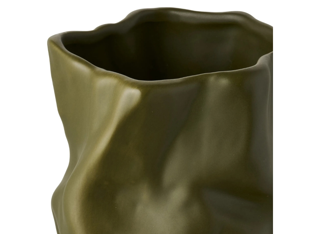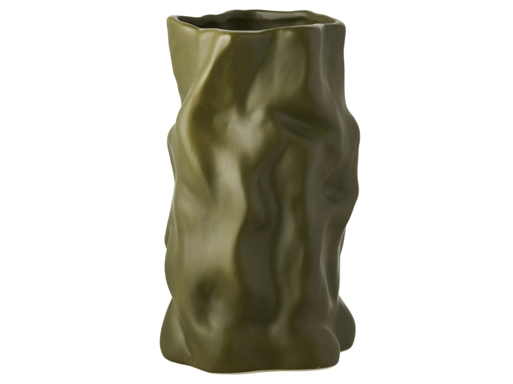 Váza Alice zaujme na první pohled svým originálním ztvárněním a nepravidelným tvarem, který připomíná ručně tvarovaný kus umění. Hladký matný povrch v olivově zeleném tónu dodává interiéru klidnou, přirozenou atmosféru a snadno se kombinuje s přírodními materiály. Váza krásně vynikne s čerstvými květinami i suchými dekoracemi, ale může působit i jako samostatný designový prvek. Umístěte ji na komodu, stůl nebo polici a nechte její sochařský tvar proměnit prostor v galerii elegance.
