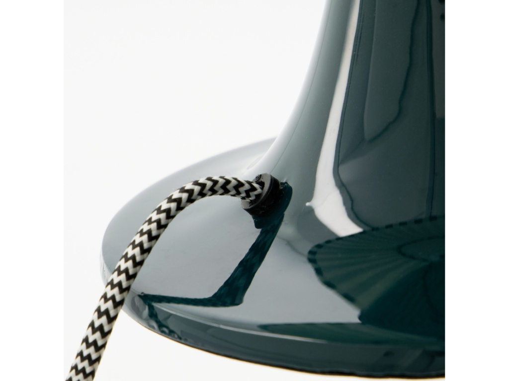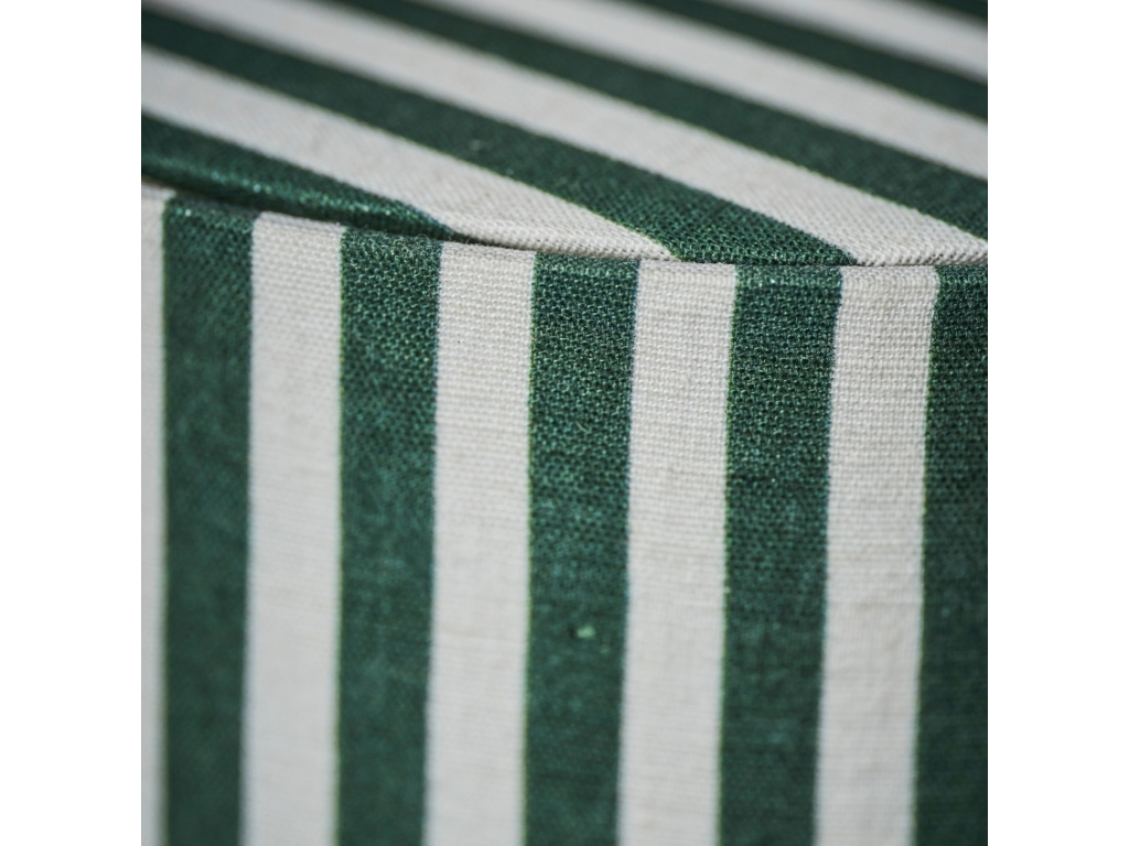 Stolní lampa s lesklou podstavou v tmavě zeleném odstínu a bílošedým látkovým stínidlem se zelenými pruhy dodá vašemu domovu elegantní šmrnc. Je skvělou volbou do ložnice, pracovny, nebo obývacího pokoje, kde vytvoří měkké a útulné osvětlení. Kabel s černobílým vzorovaným výpletem o délce 2 metrů přináší praktičnost a styl v jednom. Lampa představuje spojení tradičního designu a moderních trendů, takže zapadne bez obtíží do jakéhokoli interiéru. K dostání je ve dvou variantách.