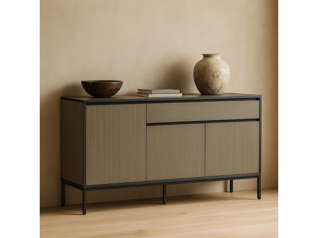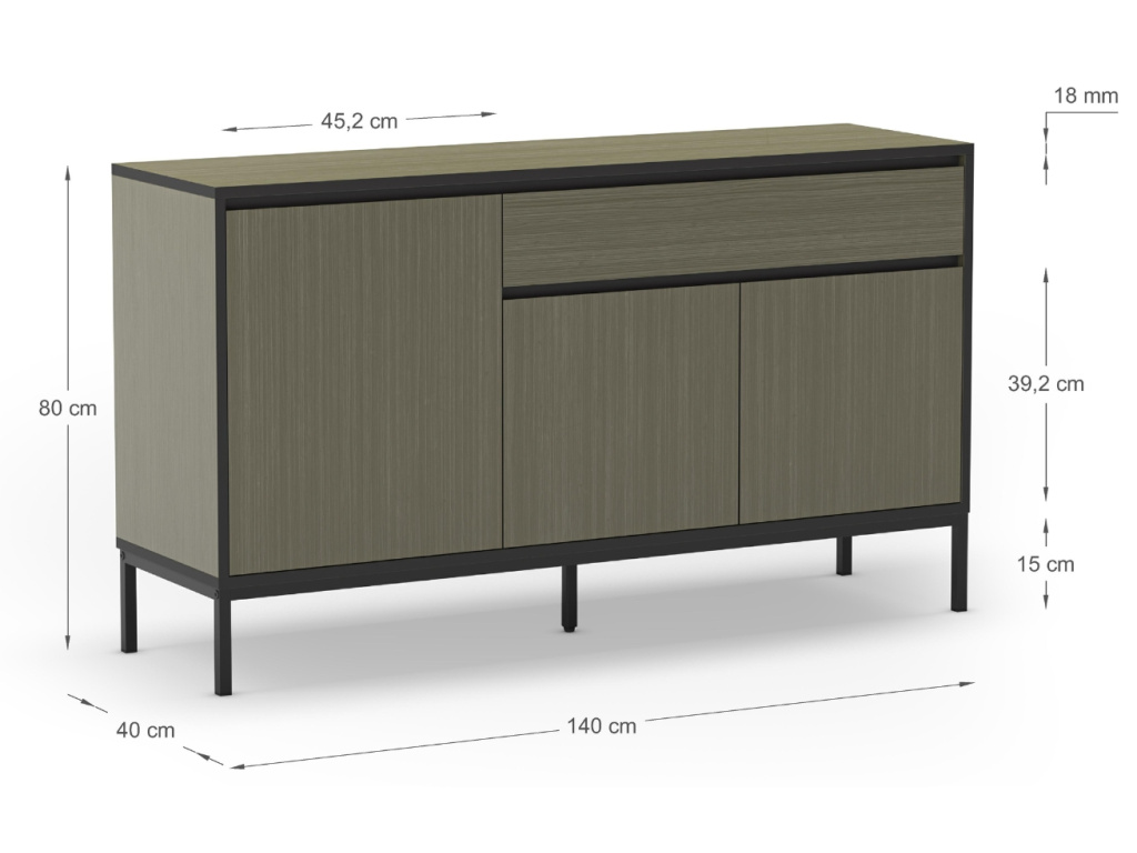 Komoda Lorenza v tlumeně zeleném odstínu s kontrastními černými hranami přinese do vašeho domova moderní vzhled a nápaditost. Korpus je vyroben z odolných melaminových desek, které zajišťují snadnou údržbu i dlouhou životnost. Díky svému elegantnímu a nadčasovému designu se skvěle hodí do minimalistických či urban stylových interiérů. V kolekci Lorenza najdete dvě barevné varianty, dvě velikosti komod a také ladící TV stolek.