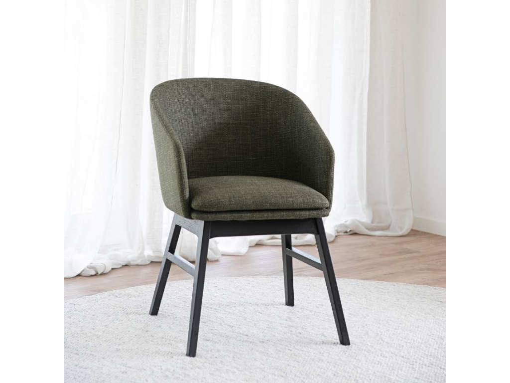 Jídelní židle WINDHAM značky ROWICO je čalouněná odolnou látkou v zajímavém vojenském zeleném odstínu. Její přítomnost bude slušet především skandinávsky laděným kuchyním i jídelnám. U pracovního i toaletního stolu může také najít využití. Pohodlné posezení zaručí nejen příjemné čalounění, ale také vysoké područky, které plynule přecházejí v prostorné opěradlo. Židle je s různě zbarvenými podnožemi - díky tomu je snadné ji sladit s barevným laděním interiéru.