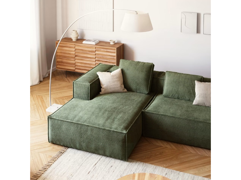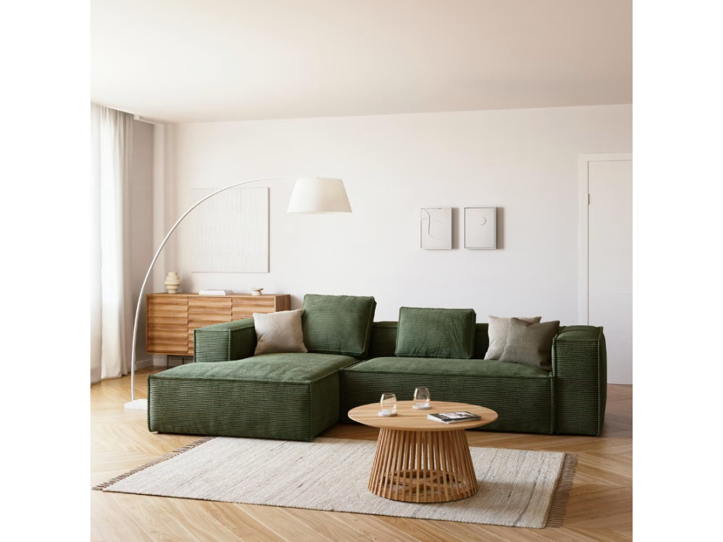 Elegantní zelená rohová pohovka Kave Home Blok hravě splňuje všechny požadavky na ideálního společníka pro chvíle odpočinku a relaxace. Maximální komfort zaručuje měkký sedák a také originální, na dotek velmi příjemné, manšestrové čalounění v zeleném odstínu. Prostorná pohovka skvěle vynikne jak ve skandinávských, tak i v moderních interiérech s vintage prvky. Užijte si s celou rodinou či návštěvou pohodlí a vychutnejte si originální styl s pohovkou Blok.