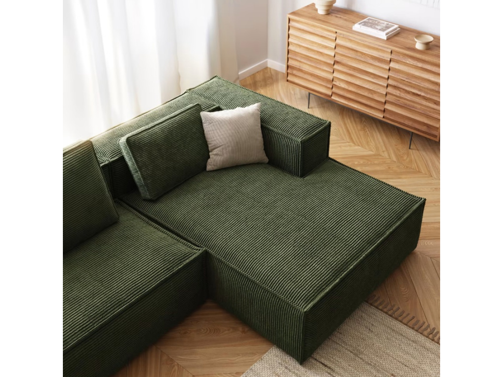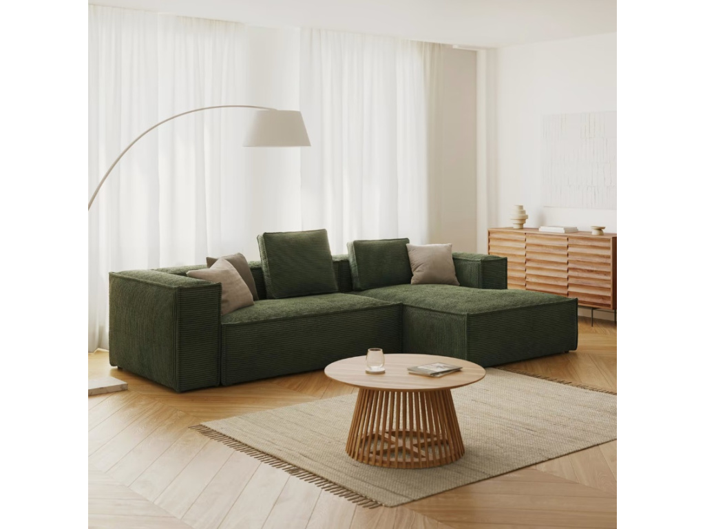 Elegantní zelená rohová pohovka Kave Home Blok hravě splňuje všechny požadavky na ideálního společníka pro chvíle odpočinku a relaxace. Maximální komfort zaručuje měkký sedák a také originální, na dotek velmi příjemné, manšestrové čalounění v zeleném odstínu. Prostorná pohovka skvěle vynikne jak ve skandinávských, tak i v moderních interiérech s vintage prvky. Užijte si s celou rodinou či návštěvou pohodlí a vychutnejte si originální styl s pohovkou Blok.